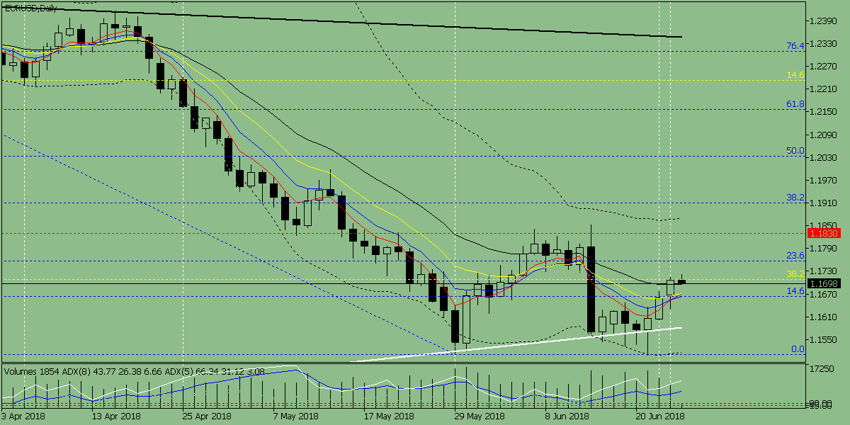 Индикаторный анализ. Дневной обзор на 26 июня 2018 по паре EUR/USDИнстаФорекс - Instaforex, 7 лет назад Трендовый анализ (рис. 1). Есть два сильных фактора, которые могут удержать быков от продолжения наступления вверх. Это свечной анализ, который даёт сильный низ. И второе - это 21 средняя ЕМА (1.1694). Рынку во вторник, чтобы двигаться вверх, нужно будет преодолеть эти два сильных фактора. Вероятнее всего, во вторник цена и дальше будет двигаться вверх, но быкам придётся приложить максимум усилий. Рис. 1 (дневной график). Комплексный анализ: - индикаторный анализ – вверх; - уровни Фибоначчи – вверх; - объёмы – вниз; - свечной анализ – вниз; - трендовый анализ – вверх; - линии Боллинджера – вниз; - недельный график - вверх. Общий вывод: Во вторник рынок будет двигаться в боковом канале, возможны сильные откаты вниз. Верхняя цель остаётся прежней 1.1758 – откатный уровень 23.6% (синяя пунктирная линия). Материал предоставлен компанией InstaForex - www.instaforex.com |