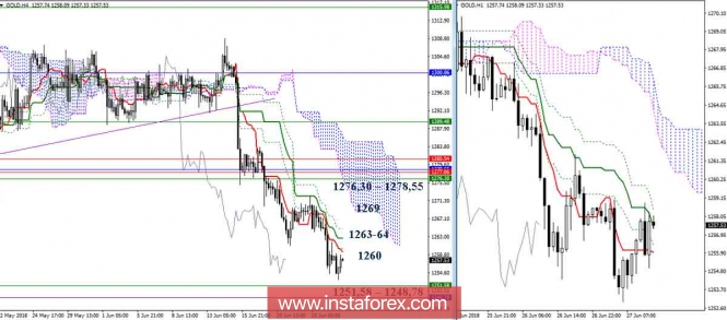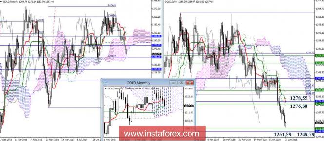 Дневной обзор GOLD на 27.06.18. Индикатор ИшимокуИнстаФорекс - Instaforex, 7 лет назад GOLD Золото продолжает снижение, и пока всё идёт по плану. Как и отмечалось ранее, ориентирами для снижения на данном этапе являются нижняя граница недельного облака (Сенкоу Спан Б 1251,58) и месячный Киджун (1248,78). В районе поддержек возможно торможение, формирование отбоя и зарождение восходящей коррекции. В этом случае ближайшими ориентирами станут уровни дневного креста, усиленные сейчас верхней границей недельного облака (1276,30) и месячным Фибо Киджуном (1278,55). Преодоление поддержек (1251,58 – 1248,78) и закрепление в медвежьей зоне относительно недельного облака позволит рассмотреть последующие понижательные ориентиры, ими станут месячный Фибо Киджун (1219,00), месячный Сенкоу Спан А (1195,22) и недельная цель на пробой облака. Младшие временные интервалы сейчас поддерживают игроков на понижение, они первыми окажут противодействие, если ситуация изменится. Важные сопротивления сегодня можно отметить в районах уровней 1260 (Тенкан Н4 + заключительные рубежи креста Н1) – 1263-1264 (облако Н1 и заключительные рубежи креста Н4) – 1269 (нижняя граница облака Н4), далее расположена зона ключевых сопротивлений, объединяющая уровни разных временных интервалов, во главе с обозначенными ранее 1276,30 – 1278,55. Параметры индикатора: все временные интервалы 9 – 26 – 52 Цвет линий индикатора: Тенкан (краткосрочный тренд) – красный, Киджун (среднесрочный тренд) – зелёный, Фибо Киджун – зеленый пунктир, Чинкоу – серый, облака : Сенкоу Спан Б (SSB, долгосрочный тренд) – синий, Сенкоу Спан А (SSA) – розовый. Цвет дополнительных линий: поддержки и сопротивления MN – синий, W1 – зелёный, D1 – красный, Н4 – розовый, Н1 – серый, горизонтальные уровни (не Ишимоку) – коричневый, трендовые линии – фиолетовый. Материал предоставлен компанией InstaForex - www.instaforex.com |