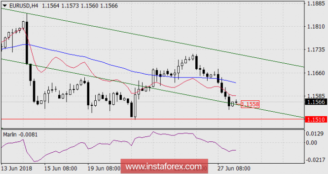 Первая цель снижения евро – поддержка трендовой линии (1.1558) была достигнута, теперь ближайшей целью становится 1.1510 – минимум текущего месяца. Закрепление под уровнем позволит рассматривать значительно более низкие цели 1.1270-1.1300 как заметный уровень мая-июня прошлого года.