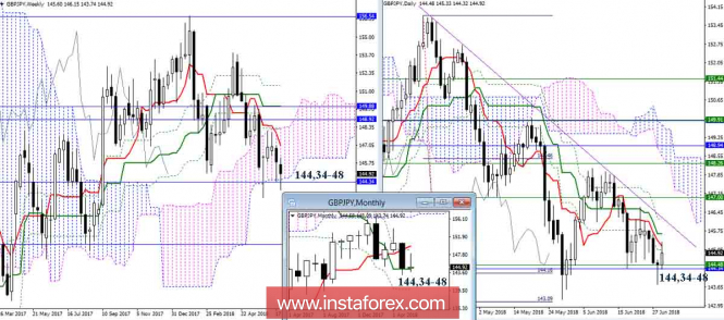 Дневной обзор GBP/JPY на 29.06.18. Индикатор ИшимокуИнстаФорекс - Instaforex, 7 лет назад GBP/JPY Очередное тестирование поддержек 144,34-48 (недельный Сенкоу Спан Б + месячный Киджун) не увенчалось успехом. Вчера на дневном таймфрейме сформирован отбой от данных уровней. К настоящему моменту пара уже исполнила полноценную дневную коррекцию до краткосрочного тренда (Тенкан 145,18). Сегодня закрываем неделю и месяц. Если игрокам на повышение удастся сохранить за собой рубежи 144,34-48, а так же обеспечить переход на свою сторону уровней дневного креста (Тенкан 145,18 + Киджун 145,63 + Фибо Киджун 146,21), то в июле можно будет ожидать увеличение бычьих настроений, ликвидацию дневного мёртвого креста и появление новых ориентиров для подъёма. Закрытие недели и месяца ниже поддержек 144,34-48 может в очередной раз привести к активности медведей и продолжению снижения. Медведи вчера предприняли попытку пробоя отработанной цели на пробой облака Н4, но соперники быстро и активно перехватили инициативу, не позволив реализовать задуманное. Следующий понижательный ориентир 143,09-17 (уровень 100% дневной цели + минимальный экстремум) продолжает сегодня сохранять своё расположение и значение. В настоящий момент игроки на повышение близки к ликвидации мёртвого креста Н4 (Фибо Киджун 145,23), пробою облака Н1 (Сенкоу Спан Б 144,94) и восстановлению дневного краткосрочного преимущества (дневной Тенкан 145,18). Надёжное преодоление данной зоны позволит поставить следующие задачи – исполнение цели Н1, тестирование облака Н4 (Сенкоу Спан Б 146,16) и взаимодействие с заключительным рубежом дневного креста (Фибо Киджун 146,21). Промежуточное сопротивление в этом случае можно отметить на 145,63 (Сенкоу Спан А Н4 + дневной Киджун). Параметры индикатора: все временные интервалы 9 – 26 – 52 Цвет линий индикатора: Тенкан (краткосрочный тренд) – красный, Киджун (среднесрочный тренд) – зелёный, Фибо Киджун – зеленый пунктир, Чинкоу – серый, облака : Сенкоу Спан Б (SSB, долгосрочный тренд) – синий, Сенкоу Спан А (SSA) – розовый. Цвет дополнительных линий: поддержки и сопротивления MN – синий, W1 – зелёный, D1 – красный, Н4 – розовый, Н1 – серый, горизонтальные уровни (не Ишимоку) – коричневый, трендовые линии – фиолетовый. Материал предоставлен компанией InstaForex - www.instaforex.com |