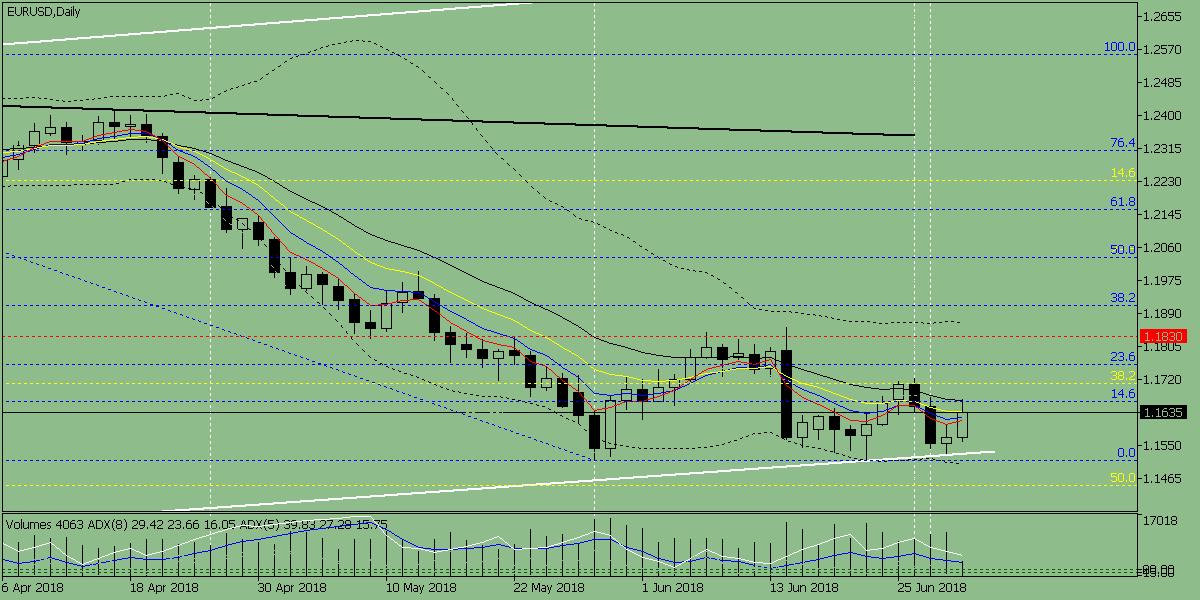 Индикаторный анализ. Дневной обзор на 28 июня 2018 по паре EUR/USDИнстаФорекс - Instaforex, 7 лет назад Трендовый анализ (рис. 1). Сегодня при движении вверх есть очень сильная область, состоящая из 21 средней ЕМА – 1.666 (чёрная сплошная линия) и откатный уровень 14.6% - 1.1664. Быкам надо будет приложить максимум усилий, чтобы преодолеть эту область. Думаю, сильные новости помогут им в этом. Рис. 1 (дневной график). Комплексный анализ: - индикаторный анализ – вверх; - уровни Фибоначчи – вверх; - объёмы – вверх; - свечной анализ – нейтрально; - трендовый анализ – вверх; - линии Боллинджера – вниз; - недельный график - вверх. Общий вывод: В четверг, после отработки 1.1664, рынок будет двигаться вверх. Верхняя цель остаётся прежней 1.1722 – верхний фрактал. Материал предоставлен компанией InstaForex - www.instaforex.com |
