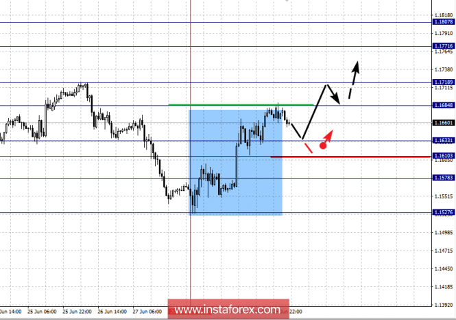 Фрактальный анализ по основным валютным парам на 2 июляИнстаФорекс - Instaforex, 7 лет назад Прогноз на 2 июля: Аналитический обзор валютных пар в масштабе Н1: По паре Евро/Доллар ключевыми уровнями в масштабе Н1 являются: 1.1807, 1.1771, 1.1718, 1.1684, 1.1633, 1.1610 и 1.1578. Здесь, цена оформила восходящую структуру от 28 июня для развития последующей тенденции. Продолжения движения к верху, ожидаем после пробоя 1.1684, в данном случае цель – 1.1718, возле этого уровня консолидация. Пробой уровня 1.1718 должен сопровождаться выраженным восходящим движением, здесь цель – 1.1771. Потенциальным значением для верха, считаем уровень 1.1807, по достижении которого, ожидаем откат к низу. Краткосрочное нисходящее движение, возможно в коридоре 1.1633 – 1.1610, пробой последнего значения приведет к углубленной коррекции, здесь цель – 1.1578, этот уровень является ключевой поддержкой для восходящей структуры. Основная тенденция – начальные условия для верха от 28 июня. Торговые рекомендации: Buy: 1.1684 Take profit: 1.1715 Buy 1.1722 Take profit: 1.1770 Sell: 1.1631 Take profit: 1.1611 Sell: 1.1608 Take profit: 1.1580 По паре Фунт/Доллар ключевыми уровнями в масштабе Н1 являются 1.3306, 1.3274, 1.3225, 1.3198, 1.3165, 1.3141 и 1.3099. Здесь, цена формирует восходящую структуру от 28 июня. Краткосрочное движение к верху, ожидаем в коридоре 1.3198 – 1.3225, пробой последнего значения должен сопровождаться выраженным движением к уровню 1.3274. Потенциальным значением для верха, считаем уровень 1.3306, по достижении которого, ожидаем откат к низу. Краткосрочное нисходящее движение, возможно в коридоре 1.3165 – 1.3141, пробой последнего значения приведет к углубленной коррекции, здесь цель – 1.3100, этот уровень является ключевой поддержкой для восходящей структуры. Основная тенденция – формирование восходящей структуры от 28 июня. Торговые рекомендации: Buy: 1.3198 Take profit: 1.3223 Buy: 1.3227 Take profit: 1.3272 Sell: 1.3165 Take profit: 1.3143 Sell: 1.3138 Take profit: 1.3105 По паре Доллар/Франк ключевыми уровня в масштабе Н1 являются: 0.9954, 0.9936, 0.9923, 0.9902, 0.9888, 0.9861, 0.9842 и 0.9816. Здесь, мы следим за формированием нисходящей структуры от 28 июня, продолжения движения к низу, ожидаем после прохода ценой шумового диапазона 0.9902 – 0.9888, в данном случае цель – 0.9861, в коридоре 0.9861 – 0.9842 консолидация. Потенциальным значением для низа, считаем уровень 0.9816, по достижении которого, ожидаем откат к верху. Краткосрочное восходящее движение, возможно в коридоре 0.9923 – 0.9936, пробой последнего значения приведет к углубленной коррекции, здесь цель - 0.9954, этот уровень является ключевой поддержкой для нисходящей структуры. Основная тенденция – формирование нисходящей структуры от 28 июня. Торговые рекомендации: Buy: 0.9923 Take profit: 0.9934 Buy: 0.9938 Take profit: 0.9952 Sell: 0.9888 Take profit: 0.9863 Sell: 0.9858 Take profit: 0.9845 По паре Доллар/Иена ключевыми уровнями в масштабе являются: 112.00, 111.58, 111.39, 111.09, 110.74, 110.52 и 110.25. Здесь, продолжения развития восходящего цикла от 26 июня, ожидаем после пробоя 111.10, в данном случае цель – 111.39, в коридоре 111.39 – 111.58 консолидация. Потенциальным значением для верха, считаем уровень 112.00, по достижении этого уровня ожидаем откат к низу. Краткосрочное нисходящее движение, возможно в коридоре 110.74 – 110.52, пробой последнего значения приведет к углубленной коррекции, здесь цель – 110.25, этот уровень является ключевой поддержкой для верха. Основная тенденция: восходящая структура от 26 июня. Торговые рекомендации: Buy: 111.10 Take profit: 111.36 Buy: 111.60 Take profit: 112.00 Sell: 110.73 Take profit: 110.52 Sell: 110.50 Take profit: 110.25 По паре Кана