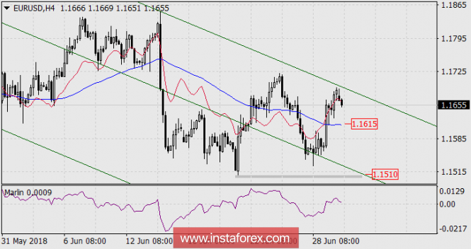 В минувшую пятницу евро возрос на 118 пунктов на фоне кажущегося оптимизма в политической сфере Европы, где было достигнуто соглашение по миграционной политике. Данный фактор, как мы отмечали и ранее, в данном случае не является каким-то значимым событием в политике, лишь сохранился прежний порядок вещей. В тот день евро выступал в качестве ведомой валюты, растущей вслед за британским фунтом, у которого, в свою очередь, были более веские основания для роста – рост ВВП за первый квартал составил 0,2% против ожидания 0,1%. Базовый ИПЦ зоны евро за июнь снизился с 1,1% г/г до 1,0% г/г, общий ИПЦ возрос с 1,9% г/г до 2,0% г/г. В США личные доходы потребителей в мае прибавили ожидаемые 0,4%, расходы увеличились на 0,2% против прогноза 0,4%. Индекс деловой активности в производственном секторе региона Чикаго за прошлый месяц возрос с 62,7 до 64,1 при ожидании понижения до 60,1. Потребительское доверие немного снизилось с 99,3 до 98,2. Фондовый рынок (S&P500) прибавил 0,08%.
