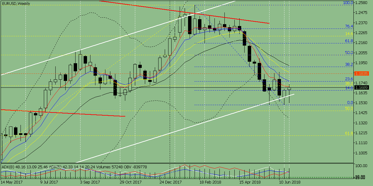 Недельный обзор с 2 по 7 июля 2018 по паре EUR/USDИнстаФорекс - Instaforex, 7 лет назад Есть восходящий канал от января 2017 года. Цена последнюю неделю, двигаясь вниз, сделала минимум 1.1528 и после этого ушла вверх. Рынок в четвёртый раз протестировал линию поддержки 1.1607 (белая линия). В этих случаях вероятность отбоя от четвёртой точки касания 70% для работы вверх. Трендовый анализ (рис. 1). На следующей неделе рынок может продолжить движение вверх, с первой целью 1.1756 – откатный уровень 23.6% (синяя пунктирная линия). Рис. 2 (недельный график). Комплексный анализ: - индикаторный анализ – вверх; - уровни Фибоначчи – вверх (синяя пунктирная линия); - объёмы – вверх; - свечной анализ – вверх; - трендовый анализ – вверх; - линии Боллинджера – вверх; - месячный график – вверх. Вывод по комплексному анализу - вверх. Общий итог расчёта свечи валютной пары EUR/USD по недельному графику: цена на неделе, вероятно, будет иметь восходящую тенденцию с отсутствием первой нижней тени у недельной белой свечи и наличием второй верхней тени. Первая верхняя цель - 1.1756 – откатный уровень 23.6% (синяя пунктирная линия). Материал предоставлен компанией InstaForex - www.instaforex.com |