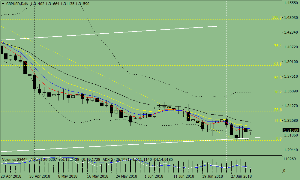 Индикаторный анализ. Дневной обзор на 3 июля 2018 по паре GBP/USDИнстаФорекс - Instaforex, 7 лет назад Трендовый анализ (рис. 1). Во вторник возможно продолжение восходящей тенденции с первой целью 1.3249 – 21 средняя ЕМА (чёрная линия). Рис. 1 (дневной график). Комплексный анализ: - индикаторный анализ – вверх; - уровни Фибоначчи – вверх; - объёмы – вверх; - свечной анализ – верх; - трендовый анализ – вверх; - линии Боллинджера – вверх; - недельный график - вверх. Общий вывод: Во вторник по паре GBP/USD движение вверх с первой целью 1.3249 – 21 средняя ЕМА (чёрная линия). Материал предоставлен компанией InstaForex - www.instaforex.com |