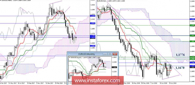 Дневной обзор EUR/USD на 03.07.18. Индикатор ИшимокуИнстаФорекс - Instaforex, 7 лет назад EUR/USD Евро закрыл июнь небольшой Волной, свечой неопределённости, сохранив надежды на восстановление бычьих преимуществ. Противодействие бычьим планам сейчас оказывает достаточно широкая зона сопротивлений, объединившая в себе многие важные уровни месячного (Сенкоу Спан А 1,1670 + Фибо Киджун 1,1708), недельного (Тенкан 1,1752 + Сенкоу Спан А 1,1776) и дневного (Киджун 1,1680 + Фибо Киджун 1,1721 + дневное облако) таймов. В результате из-за широкой и сильной зоны сопротивлений игроки на повышение пока не могут реализовать потенциал скрытой бычьей дивергенции по дневному Чинкоу и продолжить развитие восходящей коррекции за пределами дневного креста. Наиболее важной поддержкой в сложившейся ситуации продолжает оставаться месячный Киджун (1,1447). Общая неопределённость привела к раздумьям и нестабильности и на младших таймфреймах. Основная задача быков сейчас связана с пробоем облака Н4 и отработкой последующей цели, при этом будут протестированы все основные уровни зоны сопротивлений (1,1670 – 1,1776). Среди дополнительных поддержек сегодня нужно отметить 1,1609-15. Закрепление ниже изменит баланс сил младших таймов в пользу медведей, которым для усиления своих настроений нужно будет преодолеть так же минимальный экстремум (1,1508). Параметры индикатора: все временные интервалы 9 – 26 – 52 Цвет линий индикатора: Тенкан (краткосрочный тренд) – красный, Киджун (среднесрочный тренд) – зелёный, Фибо Киджун – зеленый пунктир, Чинкоу – серый, облака : Сенкоу Спан Б (SSB, долгосрочный тренд) – синий, Сенкоу Спан А (SSA) – розовый. Цвет дополнительных линий: поддержки и сопротивления MN – синий, W1 – зелёный, D1 – красный, Н4 – розовый, Н1 – серый, горизонтальные уровни (не Ишимоку) – коричневый, трендовые линии – фиолетовый. Материал предоставлен компанией InstaForex - www.instaforex.com |