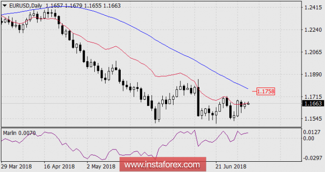 Но наблюдаемый выход цены над балансовую линию и индикатора Марлин на территорию роста не очень глубок, поэтому с учётом праздничного дня в США у рынка не хватит сил сломать медвежью техническую картину дневного масштаба. То есть ситуация равновесная и мы ждём в целом бокового движения. Поддержкой цены в текущей ситуации выступает линия Крузенштерна на уровне 1.1610. Так как наш среднесрочный медвежий сценарий сохраняется и ценовой канал лишился своего значения, ближайшей среднесрочной целью теперь выступает уровень 1.1466 – максимум мая 2015 года. Материал предоставлен компанией InstaForex - www.instaforex.com |