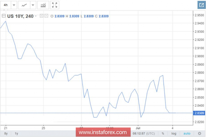 Слухи правят рынком: доходность трежерис снижается, золото растётИнстаФорекс - Instaforex, 7 лет назад Доходность 10-летних гособлигаций США продолжает снижаться. После достижения многолетнего пика 3.115%, этот показатель постепенно снизился к текущему уровню 2.833%. Здесь стоит отметить, что данная область не является катастрофически низкой – например, в прошлом году доходность трежерис колебалась в диапазоне 2.1%-2.4%. И всё же рынок обеспокоился выпрямлением кривой доходности трежерис: здесь скорее важны не текущие показатели, а непосредственно тенденция. Тем более, что негативная динамика сегодня наблюдается не только относительно 10-летних казначейских бумаг. Доходность снизилась по всем гособлигациям США, начиная с 6-месячных, заканчивая 30-летними. Исключение составляют лишь 1-3-месячные трежерис, однако данный фактор ни о чем не говорит. Американский рынок долговых бумаг повлиял и на валютный рынок, тем более на фоне относительно низкой ликвидности, из-за празднования сегодня Дня независимости США. Евро и фунт в паре с долларом смогли проявить характер и показать коррекционный рост, а защитные инструменты снова стали пользоваться осторожным спросом. И если иена растёт относительно скромными темпами, то золото укрепляется достаточно резво, восстанавливая свои позиции после падения к годовому минимуму. Буквально за два дня xau/usd прошёл путь от 1237 до текущих 1260, и по-прежнему демонстрирует бычье настроение. Забегая вперёд стоит отметить, что с технической точки зрения, первый наиболее серьезный уровень сопротивления расположен на отметке 1272 (средняя линия Bollinger Bands, совпадающая с линией Kijun-sen). Такой ценовой зазор говорит о том, что перспектива северного движения зависит лишь от фундаментальных факторов. В чем же причина снижения доходности трежерис? На самом деле произошло то, что рано или поздно должно было произойти в условиях торговой войны между США и Китаем. На рынке поползли слухи о том, что Пекин, во-первых, прекратит приобретать американские казначейские бумаги, и во-вторых существенно снизит свои текущие вложения в государственный долг Штатов. Это не первая волна подобных слухов. Ещё в конце января этого года среди трейдеров появилась информация, что официальные лица в Китае «настоятельно рекомендуют» снизить или приостановить приобретения трежерис. Слухи гуляли по рынку несколько дней, оказывая существенное давление на доллар. Но на тот момент ситуацию достаточно оперативно «погасили»: один из китайских чиновников не подтвердил опубликованную американским новостным агентством информацию, после чего доходность казначейских бумаг стала снова расти. По мнению ряда экспертов, данный информационный «вброс» не был случайностью или утечкой. На тот момент торговая война между США и Китаем была в зачаточном состоянии, и еще в обратимой стадии. Кроме того, в начале года стороны активно готовились к встрече своих лидеров – Си Цзиньпина и Дональда Трампа. Очевидно, что на этом этапе было нецелесообразно подтверждать вышеуказанные слухи или говорить о таких планах даже гипотетически. Китайцам важно было продемонстрировать реакцию рынков на подобный сценарий, накануне встречи лидеров Китая и США. Сегодня, когда торговая война между странами в разгаре, данные слухи снова вернулись – накануне введения торговых пошлин на тов