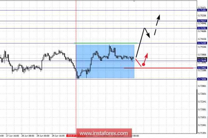 Фрактальный анализ по основным валютным парам на 5 июляИнстаФорекс - Instaforex, 7 лет назад Прогноз на 5 июля: Аналитический обзор валютных пар в масштабе Н1: По паре Евро/Доллар ключевыми уровнями в масштабе Н1 являются: 1.1807, 1.1771, 1.1718, 1.1684, 1.1633, 1.1610 и 1.1578. Здесь, мы продолжаем следить за формированием восходящей структуры от 28 июня. Продолжения движения к верху, ожидаем после пробоя 1.1684, в данном случае цель – 1.1718, возле этого уровня консолидация. Пробой уровня 1.1718 должен сопровождаться выраженным восходящим движением, здесь цель – 1.1771. Потенциальным значением для верха, считаем уровень 1.1807, по достижении которого, ожидаем откат к низу. Краткосрочное нисходящее движение, возможно в коридоре 1.1633 – 1.1610, пробой последнего значения приведет к углубленной коррекции, здесь цель – 1.1578, этот уровень является ключевой поддержкой для восходящей структуры. Основная тенденция – начальные условия для верха от 28 июня. Торговые рекомендации: Buy: 1.1684 Take profit: 1.1715 Buy 1.1722 Take profit: 1.1770 Sell: 1.1631 Take profit: 1.1611 Sell: 1.1608 Take profit: 1.1580 По паре Фунт/Доллар ключевыми уровнями в масштабе Н1 являются 1.3376, 1.3333, 1.3274, 1.3246, 1.3198, 1.3172 и 1.3129. Здесь, мы следим за восходящей структурой от 28 июня. Краткосрочное восходящее движение, ожидаем в коридоре 1.3246 – 1.3274, пробой последнего значения должен сопровождаться выраженным восходящим движением, здесь цель – 1.3333. Потенциальным значением для верха, считаем уровень 1.3376, по достижении которого, ожидаем откат к низу. Краткосрочное нисходящее движение, ожидаем в диапазоне 1.3198 – 1.3172, пробой последнего значения приведет к углубленной коррекции, здесь цель – 1.3129, этот уровень является ключевой поддержкой для восходящей структуры. Основная тенденция – формирование восходящей структуры от 28 июня. Торговые рекомендации: Buy: 1.3246 Take profit: 1.3272 Buy: 1.3276 Take profit: 1.3333 Sell: 1.3197 Take profit: 1.3174 Sell: 1.3170 Take profit: 1.3133 По паре Доллар/Франк ключевыми уровня в масштабе Н1 являются: 0.9967, 0.9942, 0.9927, 0.9902, 0.9888, 0.9861, 0.9842 и 0.9816. Здесь, мы продолжаем следить за нисходящей структурой от 28 июня. Проход ценой шумового диапазона 0.9902 – 0.9888, должен сопровождаться выраженным движением, в данном случае цель – 0.9861, в коридоре 0.9861 – 0.9842 консолидация. Потенциальным значением для низа, считаем уровень 0.9816, по достижении которого, ожидаем откат к верху. Краткосрочное восходящее движение, возможно в коридоре 0.9927 – 0.9942, пробой последнего значения приведет к углубленной коррекции, здесь цель – 0.9967, этот уровень является ключевой поддержкой для нисходящей структуры. Основная тенденция – формирование нисходящей структуры от 28 июня. Торговые рекомендации: Buy: 0.9927 Take profit: 0.9940 Buy: 0.9944 Take profit: 0.9962 Sell: 0.9902 Take profit: 0.9890 Sell: 0.9888 Take profit: 0.9865 По паре Доллар/Иена ключевыми уровнями в масштабе являются: 112.00, 111.58, 111.39, 111.09, 110.52, 110.25 и 109.96. Здесь, цена находится в глубокой коррекции от восходящей структуры 26 июня. Продолжения развития восходящего цикла от 26 июня, ожидаем после пробоя 111.10, в данном случае цель – 111.39, в коридоре 111.39 – 111.58 консолидация. Потенциальным значением для верха, считаем уровень 112.00, по достижении этого уровня ожидаем откат к низу. Консолидированное движение, возможно в коридоре 110.52 – 110.25, пробой последнего значения приведет к развитию нисходящей структуры, в данном случае первая потенциальная цель – 109.96. Основная тенденция: восходящая структура от 26 июня, стадия коррекции. Торговые рекомендации: Buy: 111.10 Tak