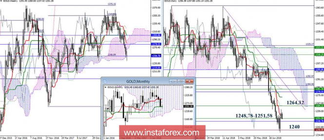 Дневной обзор GOLD на 05.07.18. Индикатор ИшимокуИнстаФорекс - Instaforex, 7 лет назад GOLD В июне золото исполнило коррекционное снижение от месячного Тенкана (1300,86) до месячного Киджуна (1248,78), протестировав при этом поддержку нижней границы недельного облака и исторический уровень в районе 1240. Поддержки замечены, и в настоящее время мы наблюдаем коррекционный подъём. Глубина коррекции зависит сейчас от важности и роли встреченных поддержек, так как их преодоление и закрепление под поддержками открывает перед игроками на понижение новые, значимые ориентиры. Одним из таких ориентиров будет являться понижательная цель на пробой недельного облака, исполнение которой сможет привести золото к минимумам конца 2016 года (1100-1150). Во время восходящей коррекции отработана по первому целевому ориентиру повышательная цель на пробой облака Н1 и встречено сопротивление облака Н4. Пробой цели Н1 и облака Н4, усиленного сейчас уровнями старших таймов (1264,32-77) открывает новые перспективы для подъёма. К сопротивлениям старших таймов 1264,77 – 1273,23 – 1278,55 – 1281,25 можно будет добавить цель на пробой облака Н4. Центром притяжения сейчас является зона 1254,92 – 1251,58 – 1248,78. Ключевой поддержкой служит район 1240. Параметры индикатора: все временные интервалы 9 – 26 – 52 Цвет линий индикатора: Тенкан (краткосрочный тренд) – красный, Киджун (среднесрочный тренд) – зелёный, Фибо Киджун – зеленый пунктир, Чинкоу – серый, облака : Сенкоу Спан Б (SSB, долгосрочный тренд) – синий, Сенкоу Спан А (SSA) – розовый. Цвет дополнительных линий: поддержки и сопротивления MN – синий, W1 – зелёный, D1 – красный, Н4 – розовый, Н1 – серый, горизонтальные уровни (не Ишимоку) – коричневый, трендовые линии – фиолетовый. Материал предоставлен компанией InstaForex - www.instaforex.com |