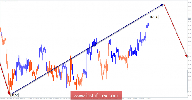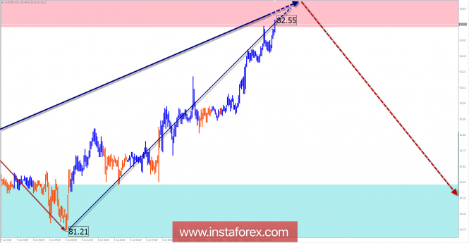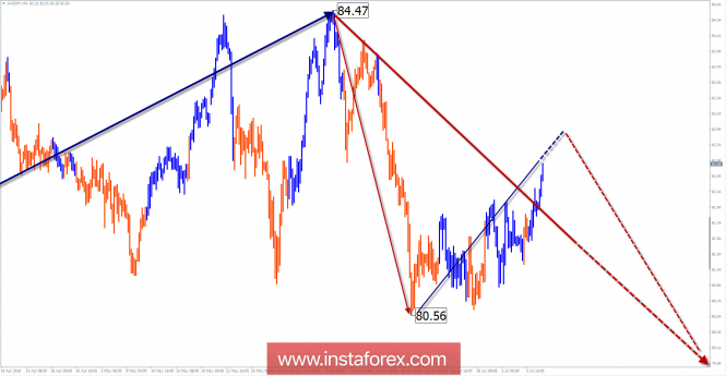 Обзор AUD/JPY на неделю от 9 июля по упрощенному волновому анализуИнстаФорекс - Instaforex, 7 лет назад Волновая картина графика H4: Доминирующее направление ценового движения кросса задается медвежьей волной от 5 января. В ней завершены первые 2 части (А+В). Волновая картина графика Н1: С 7 июня по направлению тренда более крупного масштаба образовалась нисходящая волна. В ней в последний месяц формируется средняя часть (В). Волновая картина графика М15: Восходящая волна, стартовавшая 19 июня, достигла минимальной зоны удлинения. Ее структура не завершена. После отката следует ждать продолжения подъема. Рекомендуемая торговая стратегия: Для торгующих ТФ от Н1 и выше условия входа в рынок не созданы. Сторонники меж-дневного стиля могут ненадолго продать пару. Ввиду вероятности формирования «пилы» нужно соблюдать осторожность. Зоны сопротивления: - 82.50/83.00 Зоны поддержки: - 81.50/81.00 Пояснения к рисункам: В упрощенном волновом анализе используется волны, состоящие из 3 частей (А-В-С). Для анализа используется 3 основных ТФ, на каждом анализируется последняя, незавершенная волна. Зоны демонстрируют расчетные участки с наибольшей вероятностью разворота. Стрелки указывают волновую разметку по используемой автором методике. Сплошным фоном показана сформированная структура, пунктирным – ожидаемые движения. Внимание: Волновой алгоритм не учитывает продолжительность движений инструмента по времени. Для проведения торговой сделки требуются подтверждающие сигналы используемых Вами торговых систем! Материал предоставлен компанией InstaForex - www.instaforex.com |