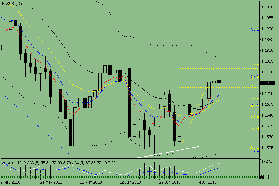 Индикаторный анализ. Дневной обзор на 10 июля 2018 по паре EUR/USDИнстаФорекс - Instaforex, 7 лет назад Трендовый анализ (рис. 1). На вторник свечной анализ и объёмы, а также наличие откатного уровня 23.6% дают низ, Вероятность работы вниз, или бокового канала, велика. Неделя по расчёту белая, а значит работа вниз будет небольшая, скорее боковой канал. Рис. 1 (дневной график). Комплексный анализ: - индикаторный анализ – вверх; - уровни Фибоначчи – вниз; - объёмы – вниз; - свечной анализ – вниз; - трендовый анализ – вверх; - линии Боллинджера – вверх; - недельный график - вверх. Общий вывод: Во вторник рынок будет двигаться вниз, в боковом канале. Первая цель 1.1730 – откатный уровень 23.6% (жёлтая пунктирная линия). Материал предоставлен компанией InstaForex - www.instaforex.com |
