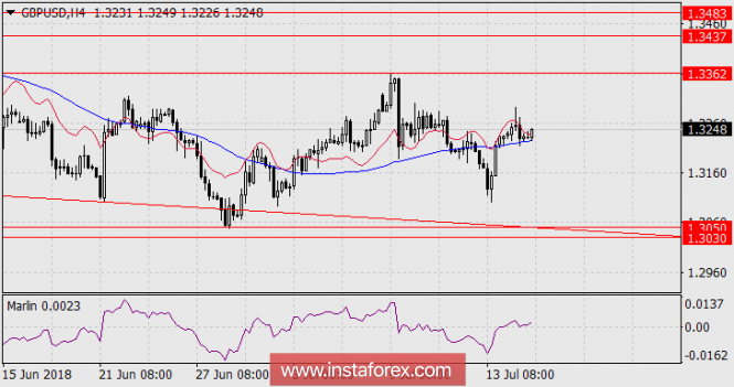 На четырёхчасовом графике цена закрепилась над голубой трендовой линией, осциллятор Марлин разворачивается от нулевой граничной линии вверх. Ближайшей целью фунта становится максимум от 9 июля на уровне 1.3362. Пробитие уровня откроет вторую цель – диапазон 1.3437/83.