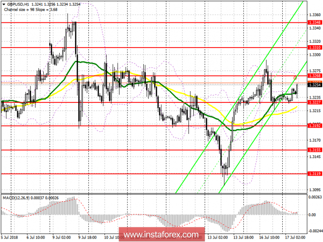 Торговый план на европейскую сессию 17 июля GBP/USDИнстаФорекс - Instaforex, 7 лет назад Для открытия длинных позиций по GBP/USD требуется: Многое будет зависеть от выступления Марка Карни. В случае пробоя сопротивления 1.3268, покупателям можно рассчитывать на продолжение восходящей тенденции, с обновлением максимумов в районе 1.3310 и 1.3348, где рекомендую фиксировать прибыль. В случае неудачного закрепления на 1.3268, рассматривать покупки фунта лучше всего на отскок от 1.3192 и 1.3155. Для открытия коротких позиций по GBP/USD требуется: Формирование ложного пробоя на сопротивлении 1.3268 будет хорошим сигналом к продажам фунта, что приведет к более крупной распродаже с тестом поддержки 1.3227, пробой которой увеличит давление на GBP/USD с дальнейшим снижением к области 1.3192 и 1.3155, где рекомендую фиксировать прибыль. В случае роста GBP/USD в первой половине дня, рассматривать продажи можно после ложного пробоя 1.3310 либо на отскок от 1.3348. Описание индикаторов