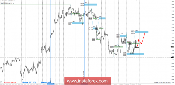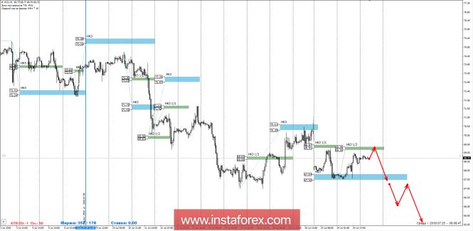 Контрольные зоны по НЕФТИ 25.07.18ИнстаФорекс - Instaforex, 7 лет назад Нисходящее среднесрочное движение остается импульсом, так как пара торгуется в рамках зоны накопления. Нарушение структуры произойдет в случае роста нефти выше 70.61$ за баррель. Торговый план на текущую неделю должен учитывать нахождение инструмента в рамках среднесрочного флета, где определяющим сопротивлением выступает НКЗ 1/2 69.36-69.20. Пока цена находится ниже указанной зоны, вероятность обновления июльского минимума равна 70%. Основной поддержкой выступает недельная КЗ 67.84-67.52. Она же является целевой зоной, тест которой требует фиксации части короткой позиции. Для продолжения нисходящего движения потребуется закрытие одной из американских сессий ниже уровня 67.52. При фиксациях короткой позиции стоит учитывать наличие сильной поддержки на уровне 67.16, которая была образована в июне, после формирования восходящего среднесрочного импульса. Тест этого уровня на прошлой неделе привел к росту цены на 400 пунктов. Для отмены нисходящего импульса потребуется закрытие сегодняшней американской сессии выше НКЗ 1/2 69.36-69.20. Это позволит рассматривать продолжение работы в рамках среднесрочного флета. Целью роста выступит недельная КЗ 71.15-70.83. Покупки станут возможными уже завтра при выполнении вышеописанных условий. Потенциальный рост составит 170 пунктов, что подразумевает размер стоп-лосса для длинной позиции не более 45 пунктов. Дневная КЗ - дневная контрольная зона. Зона, образованная важными данными с фьючерсного рынка, которые изменяются несколько раз в год. Недельная КЗ - недельная контрольная зона. Зона, образованная важными отметками фьючерсного рынка, которые изменяются несколько раз в год. Месячная КЗ - месячная контрольная зона. Зона, которая является отражением средней волатильности за последний год. Материал предоставлен компанией InstaForex - www.instaforex.com |
