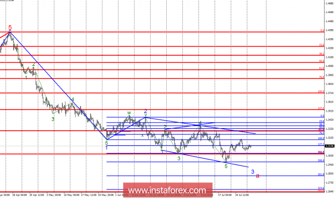 Волновой анализ GBP/USD за 31 июля. Британец готовится к новому падениюИнстаФорекс - Instaforex, 7 лет назад Анализ волновой разметки: В ходе торгов 30 июля пара GBP/USD прибавила около 15 б.п. Как и ранее, пара остается в пределах понижательного коридора, сохраняя вероятность усложнения нисходящего участка тренда, который сейчас рассматривается как волна 3, в а. Снижение котировок под минимум от 19 июля подтвердит готовность пары к усложнению нисходящего участка тренда. При исполнении этого варианта участок тренда, берущий свое начало 14 июня, приобретет более сложный вид. Прорыв верхней образующей понижательный коридор линии укажет на готовность инструмента завершить нисходящий участок тренда и перейти к построению восходящего. Цели для покупок: 1,3301 – 161,8% по Фибоначчи(старшая сетка Фибоначчи) Цели для продаж: 1,2962 – 200,0% по Фибоначчи 1,2809 – 261,8% по Фибоначчи Общие выводы и торговые рекомендации: Пара GBP/USD по-прежнему находится в рамках построения нисходящего набора волн. Хотя волна 3, в а может быть завершена, и сейчас нет веских причин предполагать ее усложнение. Таким образом, я рекомендую сейчас либо оставаться вне рынка до прояснения волновой картины, либо продавать пару около верхней линии сужающегося коридора с целями, расположенными около расчетной отметки 1,2962, что соответствует 200,0% по Фибоначчи. К покупкам пары рекомендую возвращаться выше понижательного коридора.Материал предоставлен компанией InstaForex - www.instaforex.com |
