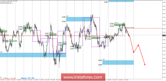 Контрольные зоны AUDUSD 01.08.18ИнстаФорекс - Instaforex, 7 лет назад Вчера произошел тест, определяющий зоны сопротивления НКЗ 1/2 0.7438-0.7432, что привело к росту предложения и падению курса. Закрытие американской сессии произошло ниже зоны, что указывает на нисходящий приоритет. Основным направлением торговли остается падение. Тест НКЗ 1/2 0.7438-0.7432 позволил получить выгодные цены на продажу инструмента. Сегодняшним планом является удержание продаж. Целью нисходящей модели выступает недельная КЗ 0.7340-0.7328, достижение которой позволит закрыть большую часть продаж и рассмотреть покупки при появлении крупного спроса. Продажи с текущих отметок все еще являются выгодными, так как отношение риска к прибыли будет равным 1 к 3. Нисходящая модель является приоритетной, потому что 26 июля произошел пробой НКЗ 1/2 0.7403-0.7397, а затем закрытие американской сессии ниже. Это повышает вероятность теста недельной КЗ до 70%. Для нарушения нисходящей модели потребуется закрытие сегодняшней американской сессии выше уровня 0.7438. Это отменит медвежью модель, рассмотренную выше, и позволит искать выгодные цены на покупку инструмента. Целью роста выступит недельная КЗ 0.7509-0.7496. Пока пара торгуется ниже НКЗ 1/2, вероятность реализации покупок составляет 30%. Это не позволяет покупать с текущих отметок. Дневная КЗ - дневная контрольная зона. Зона, образованная важными данными с фьючерсного рынка, которые изменяются несколько раз в год. Недельная КЗ - недельная контрольная зона. Зона, образованная важными отметками фьючерсного рынка, которые изменяются несколько раз в год. Месячная КЗ - месячная контрольная зона. Зона, которая является отражением средней волатильности за последний год. Материал предоставлен компанией InstaForex - www.instaforex.com |