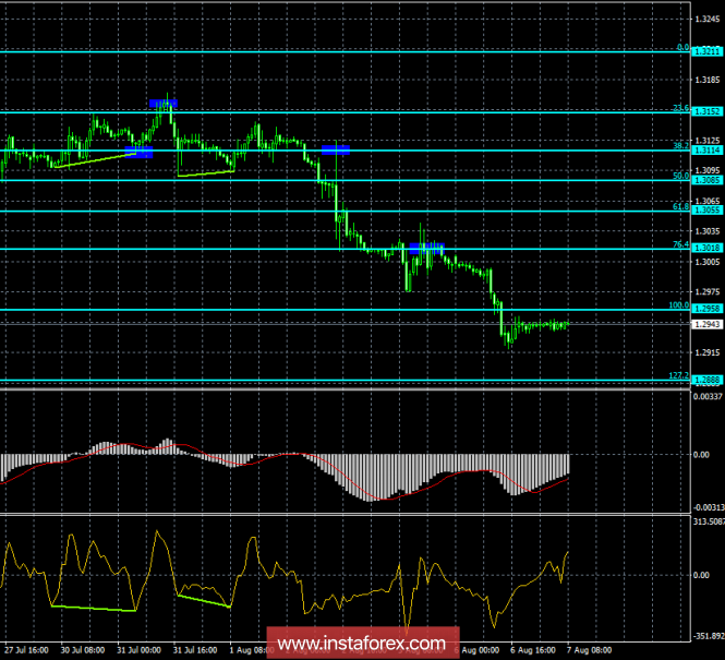 Анализ Дивергенций GBP/USD на 7 августа. Британский фунт может немного передохнутьИнстаФорекс - Instaforex, 7 лет назад 4h Котировки пары GBP/USD на 4-часовом графике продолжают процесс падения в направлении уровня Фибо 261,8% - 1,2638. Бычья дивергенция у индикатора CCIпозволяет паре выполнить разворот в пользу английского фунта и начать процесс роста в направлении уровня коррекции 200,0% - 1,3047. Закрепление котировок под последним лоу дивергенции сработает в пользу продолжения падения котировок пары. Сетка Фибо построена по экстремумам от 1 марта 2018 года и 17 апреля 2018 года. 1h На часовом графике пара выполнила закрепление под уровнем коррекции 100,0% - 1,2958. В итоге процесс падения котировок может быть продолжен в направлении следующего коррекционного уровня 127,2% - 1,2888. Назревающих дивергенций сегодня не наблюдается ни у одного индикатора. Закрепление котировок пары над уровнем Фибо 100,0% можно будет трактовать как разворот в пользу английского фунта и рассчитывать на некоторый рост в направлении коррекционного уровня 76,4% - 1,3018. Сетка Фибо построена по экстремумам от 19 июля 2018 года и 26 июля 2018 года. Рекомендации трейдерам: Покупки пары GBP/USD можно будет осуществлять с целью 1,3018 и ордером Stop Loss под уровнем коррекции 100,0%, если произойдет закрытие над уровнем Фибо 1,2958 (часовой график). Продавать пару GBP/USD можно сейчас с целью 1,2888 и ордером Stop Loss над уровнем коррекции 100,0%, так как произошло закрытие под уровнем Фибо 1,2958.Материал предоставлен компанией InstaForex - www.instaforex.com |