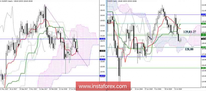 Дневной обзор EUR/JPY на 07.08.18. Индикатор ИшимокуИнстаФорекс - Instaforex, 7 лет назад EUR/JPY Пара преодолела наиболее важную зону поддержек и спустилась в дневное облако. Пройденные уровни немного изменили своё расположение и к настоящему моменту сформировали зону сопротивлений 129,03-27 (дневной Сенкоу Спан Б + недельный крест), которая может быть задействована в случае ретеста. Следующие важные рубежи, в случае подъёма, в сложившейся ситуации можно отметить на 130,25 (дневной Киджун + недельный Фибо Киджун) и 131,08 (месячный Тенкан). Ближайшей поддержкой и значимым этапом для усиления медвежьих настроений является 128,08 (недельный Фибо Киджун + дневной Сенкоу Спан А). Снижение в интересах медведей сейчас может быть продолжено, первой поддержкой на этом пути может выступить 128,08 (уровни старших таймов). В случае развития восходящей коррекции важные сопротивления сегодня собраны в районе 129,03-27 (уровни старших таймов + облако Н1). Далее нужно отметить сопротивления на 129,80 (Киджун Н4 + дневной Тенкан) – 130,25 (уровни старших таймов + облако Н4) – 131,08 (месячный Тенкан). Закрепление выше данных сопротивлений существенно изменит сложившее распределение сил, отменит все медвежьи планы и сформирует новые ориентиры для быков. Параметры индикатора: все временные интервалы 9 – 26 – 52 Цвет линий индикатора: Тенкан (краткосрочный тренд) – красный, Киджун (среднесрочный тренд) – зелёный, Фибо Киджун – зеленый пунктир, Чинкоу – серый, облака : Сенкоу Спан Б (SSB, долгосрочный тренд) – синий, Сенкоу Спан А (SSA) – розовый. Цвет дополнительных линий: поддержки и сопротивления MN – синий, W1 – зелёный, D1 – красный, Н4 – розовый, Н1 – серый, горизонтальные уровни (не Ишимоку) – коричневый, трендовые линии – фиолетовый. Материал предоставлен компанией InstaForex - www.instaforex.com |