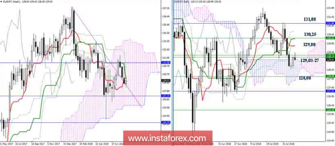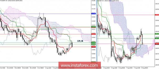 Дневной обзор EUR/JPY на 08.08.18. Индикатор ИшимокуИнстаФорекс - Instaforex, 7 лет назад EUR/JPY Пара исполнила ретест уровней, ниже которых ей удалось спуститься на прошлой неделе. В случае если сегодня тестирование зоны сопротивлений 129,03-27 (дневной Сенкоу Спан Б + недельный крест) оформится отбоем, то можно ожидать завершение подъёма и продолжение снижения. Основная задача медведей при этом будет заключаться в выходе из дневного облака и закреплении в медвежьей зоне. Нижняя граница дневного облака сейчас усилена недельным Фибо Киджуном (128,08). Если встреченные сопротивления (129,03-27) перейдут в разряд поддержек, то у игроков на повышение вновь появятся начальные преимущества. На пути подъёма нужно будет отметить сопротивления дневного креста (129,80 – 130,25) и месячного Тенкана (131,08). Пара достигла важных сопротивлений. От итога взаимодействия зависит дальнейшая судьба текущих медвежьих планов. Закрепление выше 129,30 ликвидирует крест Н4 и вернёт актуальность повышательной цели Н1, а также на более старших таймах у игроков на повышение появится существенная поддержка от уровней индикатора Ишимоку. Поэтому игрокам на понижение для продолжения снижения сегодня важно сформировать отбой от встреченных сопротивлений. Параметры индикатора: все временные интервалы 9 – 26 – 52 Цвет линий индикатора: Тенкан (краткосрочный тренд) – красный, Киджун (среднесрочный тренд) – зелёный, Фибо Киджун – зеленый пунктир, Чинкоу – серый, облака : Сенкоу Спан Б (SSB, долгосрочный тренд) – синий, Сенкоу Спан А (SSA) – розовый. Цвет дополнительных линий: поддержки и сопротивления MN – синий, W1 – зелёный, D1 – красный, Н4 – розовый, Н1 – серый, горизонтальные уровни (не Ишимоку) – коричневый, трендовые линии – фиолетовый. Материал предоставлен компанией InstaForex - www.instaforex.com |