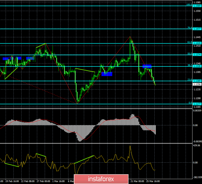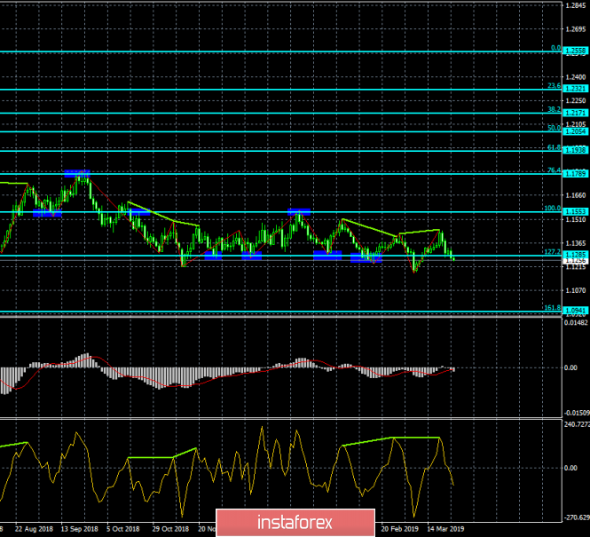 Анализ Дивергенций EUR/USD на 27 марта. Вперед, к новым минимумам?ИнстаФорекс - Instaforex, 6 лет назад 4h Пара EUR/USD на 4-часовом графике выполнила разворот в пользу американского доллара и закрепление под уровнем Фибо 23,6% - 1,1269, после отбоя котировок от уровня коррекции 38,2% - 1,1328. В итоге 27 марта процесс падения пары может быть продолжен в направлении следующего коррекционного уровня 0,0% - 1,1177. Назревающих дивергенций сегодня не наблюдается ни у одного индикатора. Закрытие пары над уровнем Фибо 23,6% сработает в пользу валюты ЕС и возобновления роста в направлении уровня коррекции 38,2%. Сетка Фибо построена по экстремумам от 10 января 2019 года и 7 марта 2019 года. Daily На 24-часовом графике котировки пары выполнили возврат к уровню коррекции 127,2% - 1,1285 и закрытие под ним. Таким образом, падение котировок вновь может продолжиться в направлении уровня Фибо 161,8% - 1,0941. Однако в целом пара продолжает торговаться вдоль уровня коррекции 127,2%. Назревающих дивергенций сегодня не наблюдается ни у одного индикатора, ни на одном из графиков. Сетка Фибо построена по экстремумам от 7 ноября 2017 года и 16 февраля 2018 года. Рекомендации трейдерам: Покупки пары EUR/USD можно будет осуществлять с целью 1,1328, если пара выполнит закрытие над уровнем 1,1269, и ордером Stop Loss под уровнем коррекции 23,6%. Продажи пары EUR/USD можно осуществлять сейчас с целью 1,1177, так как пара выполнила закрытие под уровнем коррекции 1,1269, и ордером Stop Loss над уровнем Фибо 23,6%. Материал предоставлен компанией InstaForex - www.instaforex.com |