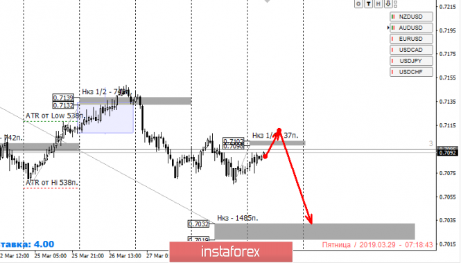 Контрольные зоны AUDUSD 29.03.19ИнстаФорекс - Instaforex, 6 лет назад В условиях нисходящего движения требуется сосредоточить внимание на поиске паттерна на продажу. Сегодняшним сопротивлением выступает НКЗ 1/4 0.7102-0.7098. Немного выше данной зоны расположился максимум вчерашнего дня. Данный диапазон необходимо использовать для входа в короткую позицию при появлении первых признаков появления предложения. Целью нисходящего движения является недельная КЗ 0.7032-0.7019. Пока она не достигнута, вероятность обновлений дневных и недельных минимумов составит 70%. Для формирования альтернативной модели потребуется пробой и закрепление выше уровня 0.7102 на сегодняшней американской сессии. Это повлечет формирование более глубокой коррекционной модели, целью которой станет НКЗ 1/2 0.7132-0.7139, где можно будет получить самые выгодные цены на продажу в текущем нисходящем импульсе. Вероятность реализации данной модели близка к 50%, что делает ее вспомогательной. Дневная КЗ - дневная контрольная зона. Зона, образованная важными данными с фьючерсного рынка, которые изменяются несколько раз в год. Недельная КЗ - недельная контрольная зона. Зона, образованная важными отметками фьючерсного рынка, которые изменяются несколько раз в год. Месячная КЗ - месячная контрольная зона. Зона, которая является отражением средней волатильности за последний год. Материал предоставлен компанией InstaForex - www.instaforex.com |