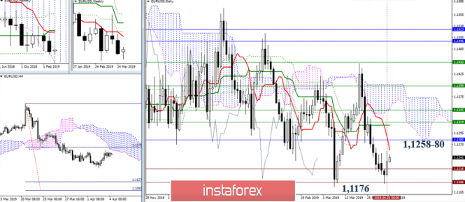 EUR/USD 4 апреля – рекомендации технического анализаИнстаФорекс - Instaforex, 6 лет назад EUR/USD Экономический календарь текущего дня относительно спокоен, важных новостей нет. Несмотря на хорошие предпосылки для медведей на начало недели, все последующие дни посвящены формированию и развитию восходящей коррекции. Сегодня пара, скорее всего, протестирует одно из сопротивлений 1,1258 (дневной Тенкан) или 1,1280 (месячный Фибо Киджун). От результата взаимодействия будет зависеть дальнейшее развитие событий. Если силы сопротивлений окажется достаточно, чтобы сформировать отбой и завершить коррекцию, то медведи, скорее всего, продолжат тренд (минимальный экстремум 1,1176). В противном случае ситуация с коррекцией или консолидацией может затянуться во времени. Внутри дня преимущества и поддержка технических инструментов на стороне игроков на повышение. Ключевой зоной, отвечающей за интересы быков, является 1,1229-25 (центральный Пивот уровень + недельная долгосрочная тенденция). Повышательные ориентиры расположены сегодня на 1,1258 (R1) – 1,1284 (R2) – 1,1313 (R3). В случае потери поддержек (1,1229-25) нужна активность медведей (1,1203 - 1,1174 - 1,1148), иначе ситуация может затянуться. Пусть не сразу, с небольшим опозданием, но несколько индикаторов всё же сформировали расхождения в пользу быков, поэтому закрепление выше вчерашнего дневного максимума может послужить активному развитию восходящей коррекции. Ichimoku Kinko Hyo (9.26.52), Pivot Points (классические), Moving Avarage (120) Материал предоставлен компанией InstaForex - www.instaforex.com |