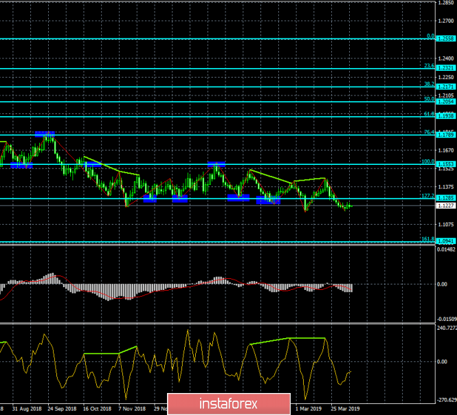 Анализ Дивергенций EUR/USD на 5 апреля. Барьер в виде 1,1240 остановил паруИнстаФорекс - Instaforex, 6 лет назад 4h Пара EUR/USD на 4-часовом графике после отбоя от уровня коррекции 76,4% - 1,1241 выполнила разворот в пользу американского доллара и начала процесс падения в направлении коррекционного уровня 100,0% - 1,1177. Назревающих дивергенций сегодня нет ни у одного индикатора. Закрытие курса пары 5 апреля над уровнем Фибо 76,4% сработает в пользу европейской валюты и возобновления роста в направлении уровня коррекции 61,8% - 1,1281. Сетка Фибо построена по экстремумам от 7 марта 2019 года и 20 марта 2019 года. Daily На 24-часовом графике пара сохраняет шансы на продолжение падения в направлении уровня Фибо 161,8% - 1,0941. Однако предыдущий лоу котировок не пускает пару ниже себя. До закрытия пары над уровнем коррекции 127,2% - 1,1285, однако вероятность дальнейшего падения остается высокой. Закрепление котировок над уровнем Фибо 127,2% можно будет трактовать как разворот в пользу валюты ЕС и ожидать на некоторый рост в направлении уровня коррекции 100,0% - 1,1553. Сетка Фибо построена по экстремумам от 7 ноября 2017 года и 16 февраля 2018 года. Рекомендации трейдерам: Покупки пары EUR/USD можно будет осуществлять с целью 1,1241, если пара выполнит отбой от уровня 100,0%, и ордером Stop Loss под уровнем 1,1177. Продажи пары EUR/USD можно осуществлять сейчас с целью 1,1177, так как пара выполнила отбой от уровня коррекции 76,4%, и с ордером Stop Loss над уровнем 1,1241. Материал предоставлен компанией InstaForex - www.instaforex.com |