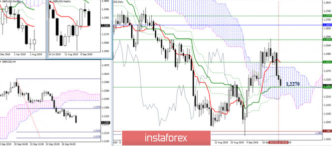 EUR/USD и GBP/USD 27 сентября – рекомендации технического анализаИнстаФорекс - Instaforex, 6 лет назад Фундаментальная составляющая Закрытие недели и близость завершения месяца способствуют массовой отчетности, но важных показателей сегодня практически нет. Обратить внимание можно лишь на изменение объёма заказов на товары долгосрочного пользования (США), публикация данных ожидается в 15:30 по московскому времени. EUR/USD Игроки на понижение сумели закрыть прошлые сутки ниже минимального экстремума (1,0926), отделяющего пару от нисходящего тренда. Если сегодня им удастся тоже самое проделать на недельном уровне, а следом и на месячном, то появятся хорошие основания для надёжного восстановления нисходящего тренда. Неудача при преодолении данного рубежа (1,0926) вернёт евро к историческому уровню (1,0958) и дневному краткосрочному тренду (1,0991), что может вновь спровоцировать развитие полноценной восходящей коррекции с далеко идущими планами. На младших временных интервалах преимущества сейчас на стороне игроков на понижение, их поддерживают все анализируемые технические инструменты. Понижательными ориентирами внутри дня являются поддержки классических Пивот-уровней, которые сегодня расположены на 1,0897 (S1) – 1,0874 (S2) – 1,0838 (S3). Подъём и закрепление выше центрального Пивот-уровня (1,0933) позволит рассмотреть развитие восходящей коррекции, следующим этапом которой станет тестирование и преодоление сопротивления недельной долгосрочной тенденции (1,0983). GBP/USD Игроки на понижение продолжили снижение и к настоящему моменту уже реализовали дневную нисходящую коррекцию до среднесрочного тренда (1,2270). Так как дневной Киджун сейчас усилен недельным Тенканом (1,2270), то при тестировании встреченных поддержек возможно торможение или развитие отбоя. Преодоление данного рубежа откроет дорогу к следующим поддержкам, которые расположены в районе 1,2196 – 1,2214 (нижняя граница дневного облака + Фибо Киджун). Сопротивлениями в сложившейся ситуации являются пройденные накануне уровни, ближайшие 1,2344 (Фибо Киджун) и 1,2399 (Сенкоу Спан Б). Нисходящий тренд на младших таймах находится сейчас в своей активной фазе. Поддержками внутри дня могут выступить заключительные уровни классических Пивот-уровней S2 (1,2256) и S3 (1,2210). Сопротивления для ограничения восходящей коррекции, в случае её зарождения, сегодня расположены на 1,2334 (центральный Пивот-уровень) и 1,2417 (недельная долгосрочная тенденция). Дивергенции EUR/USD и GBP/USD (дневной таймфрейм) Новых дивергенций нет. Ichimoku Kinko Hyo (9.26.52), Pivot Points (классические), Moving Avarage (120) Материал предоставлен компанией InstaForex - www.instaforex.com |