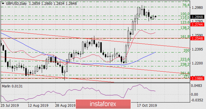 Британский премьер-министр Борис Джонсон в очередной раз потерпел поражение от парламента – Евросоюз согласился на продление срока Брексит до 31 января, но парламент проголосовал против досрочных выборов. Ситуация по Брекситу наконец стала ясной – сделке быть, фунт стерлингов закрыл день умеренным ростом в 32 пункта. Теперь инвесторы могут сосредоточиться на политике ФРС и в целом на политике США. Понижение ставки ФРС на завтрашнем заседании, при всей шумихе и рыночном ожидании вероятности этого понижения в 94%, не так однозначно, так как члены FOMC уже высказывались, что «низкий старт» получился слишком быстрым, его влияние на экономику ещё не исследовано. На этом фоне недавнее увеличение объёмов ликвидности через инструменты РЕПО может показаться излишним, но раз два понижения уже было и РЕПО состоявшееся событие, третье понижение можно отложить на декабрь. На наш взгляд это оптимальный вариант для сохранения стабильности на рынках – заявить о декабрьском понижении без завтрашнего понижения. Что касается ожидания в 95%, которое ФРС не может игнорировать и «должно соответствовать», как это было всегда ранее, то здесь мы имеем первое редкое исключение – характер, или структура ожидания чисто спекулятивная, преимущественно создавшаяся на хороших показателях Services PMI 24-го октября и просчёта самой ФРС, не сумевшей удержать коммуникацию с рынками.