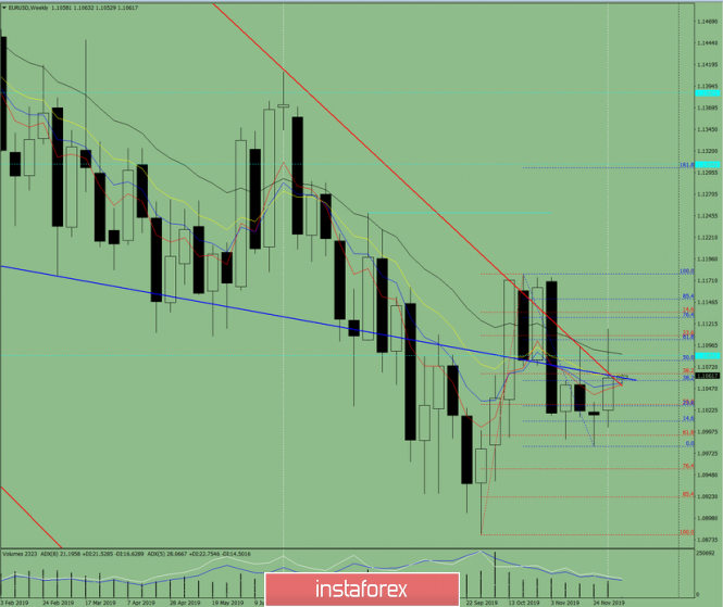 Технический анализ на неделю с 9 по 14 декабря по валютной паре EUR/USDИнстаФорекс - Instaforex, 5 лет назад Пара всю последнюю неделю двигаясь вверх, но после тестирования откатного уровня 61.8% - 1.1103 (синяя пунктирная линия) цена ушла вниз и закрылась ниже линии поддержки 1.1063 (красная жирная линия). Цена на предстоящей неделе попробует продолжить движение вверх. Трендовый анализ. На этой неделе цена будет двигаться вверх с первой целью 1.1103 – откатный уровень 61.8% (синяя пунктирная линия). При пробитии верх этого уровня следующей верхней целью будет откатный уровень 76.4% - 1.1128 (синяя пунктирная линия). Рис. 1 (недельный график). Комплексный анализ: - индикаторный анализ – вверх; - уровни Фибоначчи – вверх; - объёмы – вверх; - свечной анализ – вверх; - трендовый анализ – нейтрально; - линии Боллинджера – вниз; - месячный график – вверх. Вывод по комплексному анализу - восходящее движение. Общий итог расчёта свечи валютной пары EUR/USD по недельному графику: цена на неделе, вероятно, будет иметь восходящую тенденцию, с отсутствием первой нижней тени у недельной белой свечи (понедельник – вверх) и отсутствием второй верхней тени (пятница – вверх). Первая цель при движении вверх 1.1103 – откатный уровень 61.8% (синяя пунктирная линия). При пробитии верх этого уровня следующей верхней целью будет откатный уровень 76.4% - 1.1128 (синяя пунктирная линия). Маловероятный нижний сценарий – первая нижняя цель 1.0981 – нижний фрактал (синяя пунктирная линия). В случае успеха следующая нижняя цель, откатный уровень 76.4% - 1.0955 (красная пунктирная линия). Материал предоставлен компанией InstaForex - www.instaforex.com |