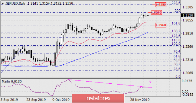 Прогноз по GBP/USD на 10 декабря 2019 годаИнстаФорекс - Instaforex, 5 лет назад GBP/USD Рост цены к ближайшим целевым уровням 1.3206 или 1.3352 ещё не сможет полностью нивелировать этот риск, образующая конвергенцию линия лишь станет более пологой. Этот момент предупреждает о варианте разворота цены вниз в случае его кратковременного роста сразу после выборов.