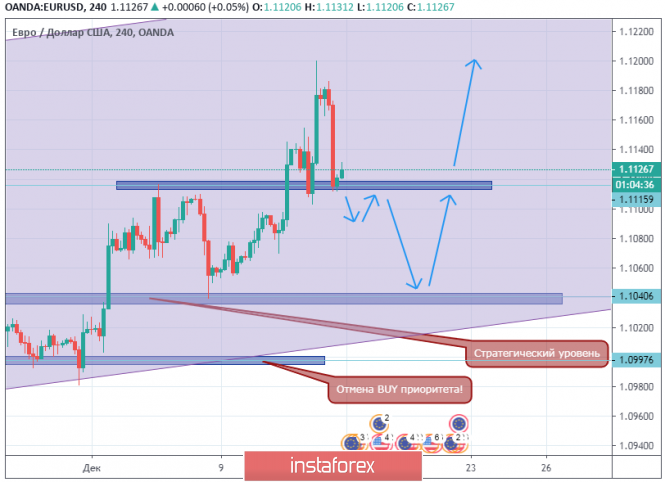 EUR/USD сохраняет BUY приоритет! Отчет по AUD/USDИнстаФорекс - Instaforex, 5 лет назад День добрый, уважаемые коллеги! Прежде чем приступим к рассмотрению потенциального движения пары EUR/USD, разрешите пару слов по предыдущему прогнозу "GBP/USD отчет. AUD/USD - BUY приоритет!" - после выхода прогноза, в котором коррекция прогнозировалась на понедельник-вторник, рынок ждать не стал, и уже в пятницу цена "откатила" на 50 пунктов практически в целевую зону, из которой и намечены дальнейшие покупки. Поэтому, дорогие коллеги, открываем длинные позиции при образовании возможности для покупок - паттернов для входа в рынок на BUY! EUR/USD сохраняет BUY приоритет! Однако вероятность технической коррекции торгового инструмента к уровню 1.1040 по-прежнему велика, так как "медведи" крайне яростно защищали и смогли защитить 12-ю фигуру, что вылилось в падение валютного инструмента почти на 80 пунктов от локального максимума. В данный момент цена максимально близко располагается у уровня поддержки на отметке 1.1115, уверенное прохождение которого, откроет "медведям" путь к очередному тестированию стратегического уровня 1.1040, откуда уже можно рассматривать покупки исключительно при образовании паттерна на вход в длинные позиции! Поэтому рекомендация по EUR/USD звучит следующим образом, хотя вы и так уже догадались: покупаем EUR/USD после коррекционного снижения к уровню 1.1040. Цели по BUY EUR/USD находятся у верхней границы канала в районе 13-й фигуры. Отменой же BUY сценария будет являться уверенное прохождение ценой уровня поддержки 1.1040, тестирование его на понижающихся объемах и дальнейшее снижение и прохождение уровня поддержки 1.0997. Материал предоставлен компанией InstaForex - www.instaforex.com |