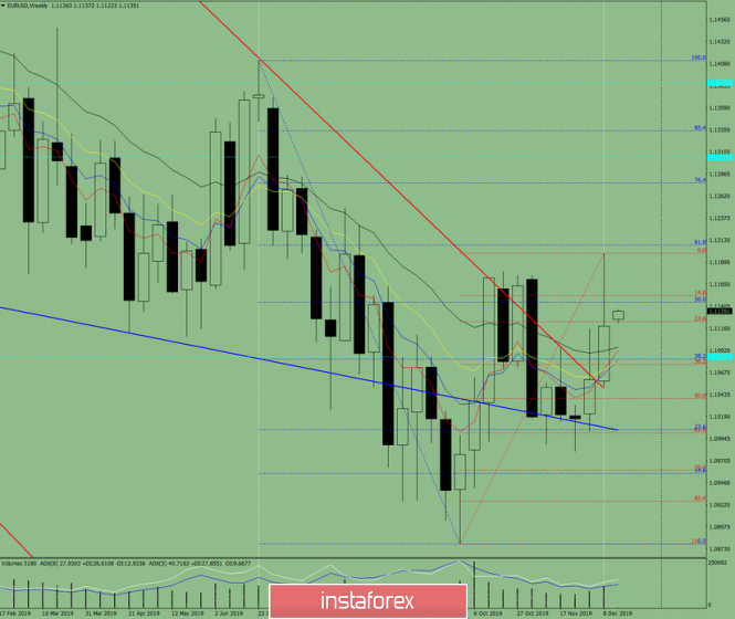 Технический анализ на неделю с 16 по 21 декабря по валютной паре EUR/USDИнстаФорекс - Instaforex, 5 лет назад Пара всю последнюю неделю двигалась вверх, но после того как почти достигла откатного уровня 61.8% - 1.1201 (синяя пунктирная линия), цена ушла вниз и закрылась ниже откатного уровня 23.6% - 1.1123 (красная пунктирная линия). Цена на предстоящей неделе попробует продолжить движение вверх. Трендовый анализ. На этой неделе цена будет двигаться вверх с первой целью 1.1199 – верхний фрактал (красная пунктирная линия). При пробитии верх этого уровня следующей верхней целью будет откатный уровень 76.4% - 1.1276 (синяя пунктирная линия). Рис. 1 (недельный график). Комплексный анализ: - индикаторный анализ – вверх; - уровни Фибоначчи – вверх; - объёмы – вверх; - свечной анализ – вверх; - трендовый анализ – верх; - линии Боллинджера – вверх; - месячный график – вверх. Вывод по комплексному анализу – восходящее движение. Общий итог расчёта свечи валютной пары EUR/USD по недельному графику: цена на неделе, вероятно, будет иметь восходящую тенденцию, с отсутствием первой нижней тени у недельной белой свечи (понедельник – вверх) и отсутствием второй верхней тени (пятница – вверх). Маловероятный нижний сценарий – от уровня 1.1145 откатный уровень 50% (синяя пунктирная линия) движение вниз. Первая нижняя цель 1.1076 – откатный уровень 38.2% (красная пунктирная линия). В случае успеха следующая нижняя цель, откатный уровень 50.0% - 1.1039 (красная пунктирная линия). Материал предоставлен компанией InstaForex - www.instaforex.com |