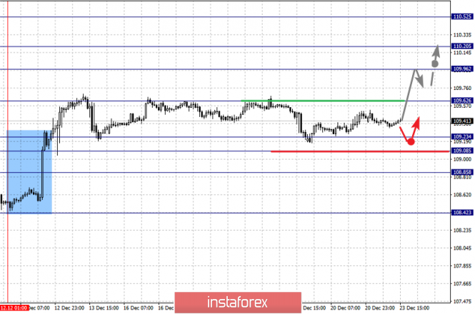Фрактальный анализ по основным валютным парам на 23 декабряИнстаФорекс - Instaforex, 5 лет назад Прогноз на 23 декабря: Аналитический обзор валютных пар в масштабе Н1: По паре Евро/Доллар ключевыми уровнями в масштабе Н1 являются: 1.1134, 1.1107, 1.1090, 1.1059, 1.1044, 1.1021 и 1.0990. Здесь, мы следим за развитием нисходящего цикла от 13 декабря. Краткосрочное движение к низу, ожидаем в диапазоне 1.1059 – 1.1044, пробой последнего значения приведет к движению до уровня 1.1021, возле этого уровня консолидация и отсюда высока вероятность разворота в коррекцию. В качестве потенциального значения для низа, рассматриваем уровень 1.0990. Краткосрочное восходящее движение, ожидаем в диапазоне 1.1090 – 1.1107 пробой последнего значения приведет к углубленной коррекции, здесь цель – 1.1134. Основная тенденция – нисходящий цикл от 13 декабря Торговые рекомендации: Buy: 1.1090 Take profit: 1.1107 Buy: 1.1109 Take profit: 1.1130 Sell: 1.1057 Take profit: 1.1045 Sell: 1.1043 Take profit: 1.1022 По паре Фунт/Доллар ключевыми уровнями в масштабе Н1 являются: 1.3108, 1.3035, 1.2982, 1.2901 и 1.2827. Здесь, мы следим за развитием нисходящего цикла от 13 декабря. Продолжения движения к низу, ожидаем после пробоя 1.2901, здесь потенциальная цель – 1.2827, от этого уровня ожидаем откат в коррекцию. Краткосрочное восходящее движение, возможно в коридоре 1.2982 – 1.3035, пробой последнего значения приведет к затяжной коррекции, здесь цель – 1.3108, этот уровень является ключевой поддержкой для нисходящей структуры. Основная тенденция – нисходящий цикл от 13 декабря Торговые рекомендации: Buy: 1.2982 Take profit: 1.3033 Buy: 1.3037 Take profit: 1.3108 Sell: 1.2900 Take profit: 1.2830 Sell: Take profit: По паре Доллар/Франк ключевыми уровня в масштабе Н1 являются: 0.9917, 0.9895, 0.9879, 0.9854, 0.9835, 0.9799, 0.9785 и 0.9768. Здесь, цена оформила выраженные начальные условия для верха от 19 декабря. Продолжения восходящего движения, ожидаем после пробоя 0.9835, в данном случае цель – 0.9854, возле этого уровня консолидация. Пробой уровня 0.9855 приведет к выраженному движению, здесь цель – 0.9879, в коридоре 0.9879 – 0.9895 краткосрочное восходящее движение, а также консолидация. Потенциальным значением для верха, считаем уровень 0.9917, от которого, ожидаем откат к низу. Краткосрочное нисходящее движение, возможно в коридоре 0.9799 – 0.9785, пробой последнего значения приведет к отмене восходящей структуры от 19 декабря, в данном случае первая цель – 0.9768. Основная тенденция – начальные условия для верха от 19 декабря Торговые рекомендации: Buy: 0.9835 Take profit: 0.9852 Buy: 0.9856 Take profit: 0.9877 Sell: 0.9799 Take profit: 0.9787 Sell: 0.9783 Take profit: 0.9768 По паре Доллар/Иена ключевыми уровнями в масштабе являются: 110.52, 110.20, 109.96, 109.62, 109.23, 109.08 и 108.85. Здесь, мы следим за формированием начальных условий для верха от 12 декабря. Продолжения движения к верху, ожидаем после пробоя 109.62, в данном случае цель – 109.96, в коридоре 109.96 – 110.20 ожидаем краткосрочное восходящее движение, а также консолидацию. Потенциальным значением для верха, считаем уровень 110.52, по достижении которого, ожидаем откат в коррекцию. Краткосрочное нисходящее движение, ожидаем в диапазоне 109.23 – 109.08, пробой последнего значения приведет к углубленной коррекции, здесь цель – 108.85, этот уровень является ключевой поддержкой для восходящей структуры от 12 декабря. Основная тенденция: начальные условия для верха от 12 декабря Торговые рекомендации: Buy: 109.63 Take profit: 109.96 Buy: 109.98 Take profit: 110.20 Sell: 109.23 Take profit: 109.08 Sell: 109.06 Take profit: 108.85 По паре Канадский доллар/Доллар ключевыми уровнями в масштабе Н1 явл