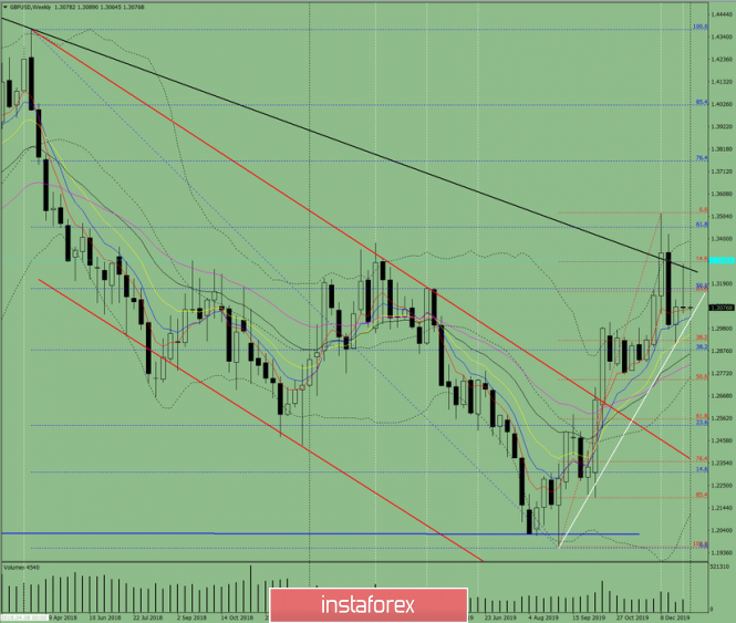 Технический анализ на неделю, с 6 по 11 января, по валютной паре GBP/USDИнстаФорекс - Instaforex, 5 лет назад На прошедшей неделе пара, двигаясь вверх, в очередной раз протестировала линию сопротивления 1.3268 (чёрная жирная линия) и после этого цена ушла вниз, практически вернувшись в точку открытия недельной свечи. Вероятнее всего, на этой неделе движение вниз может продолжиться. Трендовый анализ. На этой неделе цена будет двигаться вниз с первой целью 1.2925 – откатный уровень 38.2% (красная пунктирная линия). В случае достижения, продолжение работы вниз с целью 1.2741 – откатный уровень 50.0% (красная пунктирная линия). Рис. 1 (недельный график). Комплексный анализ: - индикаторный анализ – вниз; - уровни Фибоначчи – вниз; - объёмы – вниз; - свечной анализ – нейтрально; - трендовый анализ – вниз; - линии Боллинджера – вниз; - месячный график – вверх. Вывод по комплексному анализу – нисходящее движение. Общий итог расчёта свечи валютной пары GBP/USD по недельному графику: цена на неделе, вероятно, будет иметь нисходящую тенденцию с отсутствием первой верхней тени у недельной чёрной свечи (понедельник – вниз) и отсутствием второй нижней тени (пятница – вниз). Маловероятный сценарий – от линии поддержки 1.3029 (белая жирная линия) работа вверх с целью 1.3255 – линия сопротивления (чёрная жирная линия). Материал предоставлен компанией InstaForex - www.instaforex.com |