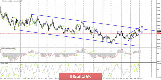 EUR/USD. 6 января. Новая долгосрочная торговая идея по евроИнстаФорекс - Instaforex, 5 лет назад EUR/USD – 4H. Пара EUR/USD 3 января выполнила падение в нижнюю часть малого восходящего трендового коридора, выполнила разворот в пользу евровалюты и начала процесс роста в направлении верхней линии глобального трендового коридора. Я считаю, что около этой линии решится судьба евро на ближайшие недели. Закрытие котировок пары над нисходящим коридором может означать завершение многомесячного нисходящего тренда. Отбой котировок от этой линии сработает в пользу американского доллара и позволит трейдерам рассчитывать на падение на 200 – 300 пунктов вниз. Также вторым сигналом к продажам пары евро-доллар может выступить закрепление котировок под восходящим трендовым коридором, которое также позволит ожидать дальнейшее падение пары. В это же время закрытие над восходящим коридором сработает в пользу валюты ЕС и роста как минимум на 150-200 пунктов вверх. Прогноз по EUR/USD и рекомендации трейдерам: Прошлая торговая идея заключалась в продажах пары с целью около 1,1125. Сейчас я предлагаю трейдерам немного подождать, чтобы выяснить, что произойдет около верхней линии нисходящего коридора. В зависимости от того, случится ли прорыв или отбой, трейдеры получат цели для роста или падения на примерно 200 пунктов. Материал предоставлен компанией InstaForex - www.instaforex.com |