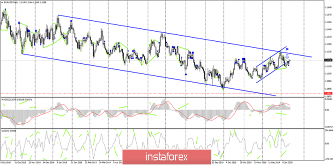 EUR/USD. 16 января. Долгосрочная торговая идея сохраняется. Перспектива – 1,0851ИнстаФорекс - Instaforex, 5 лет назад EUR/USD – Daily. Пара EUR/USD 15 января на 24-часовом графике продолжает процесс роста в направлении верхней линии нисходящего трендового коридора, который прогнозирует дальнейшее снижение котировок пары евро-доллар. Были получены ранее два сигнала к продажам. Первый – отбой от верхней линии коридора, второй – закрытие под малым восходящим коридором. На текущий момент котировки пары восстанавливаются, что ставит под сомнение отработку обоих сигналом и торговой идеи, однако в области 1,1160 – 1,1200 пара может выполнить новый разворот в пользу американской валюты и сделать новый заход на падение на 350 пунктов. Идея немного рискованная, тем не менее довольно солидный Take Profit может привлечь трейдеров к новым продажам в области 1,1160 – 1,1200. Информационный фон сейчас также на стороне доллара США. Отчеты по промышленному производству в ЕС и индексу потребительских цен в Германии оказались слабыми. Инфляция в США, наоборот, выросла до 2,3% г/г. Таким образом, и «фундамент», и «графика» предсказывают падение. К сожалению, даже когда все факторы говорят об определенном движении, оно не всегда сбывается. Прогноз по EUR/USD и рекомендации трейдерам: Долгосрочная торговая идея остается в силе, так как котировки пары выполнили закрепление под восходящим малым коридором на 24-часовом графике. Трейдеры по-прежнему имеют цель для падения около уровня 1,0850. Сроки исполнения – 2-3 недели. Все краткосрочные торговые идеи отменены. Материал предоставлен компанией InstaForex - www.instaforex.com |