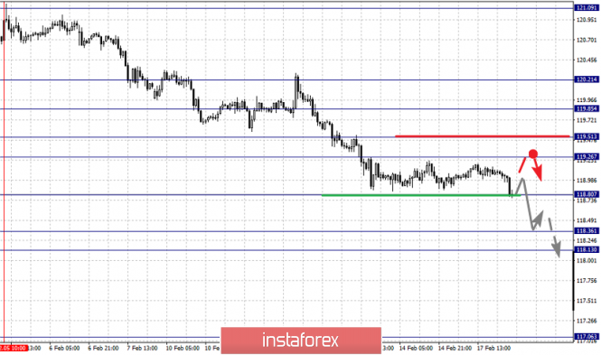 Фрактальный анализ по основным валютным парам на 18 февраляИнстаФорекс - Instaforex, 5 лет назад Прогноз на 18 февраля: Аналитический обзор валютных пар в масштабе Н1: По паре Евро/Доллар ключевыми уровнями в масштабе Н1 являются: 1.0938, 1.0910, 1.0888, 1.0864 и 1.0827. Здесь, цена находится возле предельных значений для нисходящего цикла, в связи с чем, ожидаем уход в коррекцию. Краткосрочное восходящее движение, ожидаем в коридоре 1.0864 – 1.0888, пробой последнего значения приведет к развитию коррекции, здесь цель – 1.0910, этот уровень является ключевой поддержкой для нисходящей структуры, его проход ценой приведет к формированию выраженных начальных условий для восходящего цикла, в данном случае потенциальная цель – 1.0938. Основная тенденция – нисходящая структура от 31 января, ожидаем уход в коррекцию Торговые рекомендации: Buy: 1.0864 Take profit: 1.0887 Buy: 1.0888 Take profit: 1.0910 Sell: Take profit: Sell: Take profit: По паре Фунт/Доллар ключевыми уровнями в масштабе Н1 являются: 1.3182, 1.3157, 1.3114, 1.3082, 1.3045, 1.2990, 1.2961 и 1.2928. Здесь, мы следим за развитием восходящей структуры от 10 февраля. Продолжения движения к верху, ожидаем после пробоя 1.3045, в данном случае цель – 1.3082, в коридоре 1.3082 – 1.3114 краткосрочное восходящее движение, а также консолидация. Пробой уровня 1.3114 приведет к выраженному движению, в данном случае потенциальная цель – 1.3157, по достижении которого, ожидаем консолидированное движение в диапазоне 1.3157 – 1.3182, а также уход в коррекцию. Краткосрочное нисходящее движение, возможно в коридоре 1.2990 – 1.2961, пробой последнего значения приведет к углубленной коррекции, здесь цель – 1.2928, этот уровень является ключевой поддержкой для восходящей структуры. Основная тенденция – восходящая структура от 10 февраля. Торговые рекомендации: Buy: 1.3045 Take profit: 1.3080 Buy: 1.3083 Take profit: 1.3112 Sell: 1.2990 Take profit: 1.2962 Sell: 1.2959 Take profit: 1.2930 По паре Доллар/Франк ключевыми уровня в масштабе Н1 являются: 0.9858, 0.9826, 0.9810, 0.9787, 0.9771, 0.9743 и 0.9719. Здесь, мы следим за локальной восходящей структурой от 12 февраля. Краткосрочное восходящее движение, ожидаем в коридоре 0.9810 – 0.9826, пробой последнего значения приведет к движению до потенциальной цели – 0.9857, от этого уровня ожидаем откат к низу. Краткосрочное нисходящее движение, возможно в коридоре 0.9787 – 0.9771, пробой последнего значения будет располагать к развитию нисходящей структуры, в данном случае первая потенциальная цель – 0.9743, до уровня 0.9719 ожидаем выраженных начальных условий для нисходящего цикла. Основная тенденция –локальный потенциал для верха от 12 февраля Торговые рекомендации: Buy: 0.9810 Take profit: 0.9824 Buy: 0.9827 Take profit: 0.9856 Sell: 0.9787 Take profit: 0.9773 Sell: 0.9769 Take profit: 0.9745 По паре Доллар/Иена ключевыми уровнями в масштабе являются: 110.80, 110.47, 109.99, 109.62, 109.41 и 109.07. Здесь, мы следим за развитием восходящей структуры от 31 января. Продолжения движения к верху, ожидаем после пробоя 110.00, в данном случае цель – 110.47, возле этого уровня консолидация. Потенциальным значением для верха, считаем уровень 110.80, по достижении которого, ожидаем откат к низу. Краткосрочное нисходящее движение, возможно в коридоре 109.62 – 109.41, пробой последнего значения приведет к углубленной коррекции, здесь цель – 109.07, этот уровень является ключевой поддержкой для верха. Основная тенденция: восходящая структура от 31 января Торговые рекомендации: Buy: 110.00 Take profit: 110.45 Buy: 110.49 Take profit: 110.80 Sell: 109.60 Take profit: 109.42 Sell: 109.38 Take profit: 109.10 По паре Канадский доллар/Доллар ключ