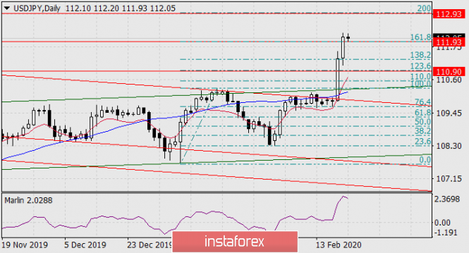 Прогноз по USD/JPY на 21 февраля 2020 годаИнстаФорекс - Instaforex, 5 лет назад USD/JPY Здесь цена может задержаться чуть дольше, после чего, по основному сценарию, продолжит рост к уровню Фибоначчи 200,0% на цене 112.93.