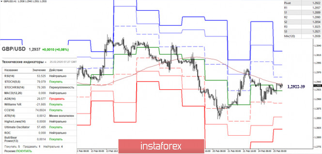 EUR/USD и GBP/USD 25 февраля – рекомендации технического анализаИнстаФорекс - Instaforex, 5 лет назад Экономический календарь (время московское) Важных показателей в сегодняшнем экономическом календаре практически нет. Отметить можно лишь индекс доверия потребителей, публикация данных по которому ожидается в 18:00 (США). EUR/USD Игроки на повышение вчера смогли удержать ситуацию и не позволили сопернику сформировать отбой от встреченного сопротивления дневного краткосрочного тренда. Благодаря этому можно сказать, что быки настаивают на развитии коррекционного подъёма. На текущей неделе закрываем месяц. Если игроки на понижение не смогут зафиксировать закрытие в пределах нисходящего тренда (минимальный экстремум 1,0879), а бросят в его сторону лишь длинную тень месячной свечи, то в марте, скорее всего, активность и усиление настроений будут исходить от соперника. На младших таймах неспособность игроков на повышение надёжно выйти за пределы зоны коррекции лишает их поддержки некоторых технических индикаторов. Изменить ситуацию на Н1 может лишь продолжение подъёма и формирование новых максимумов. Повышательными ориентирами внутри дня являются сопротивления классических Пивот-уровней 1,0881 – 1,0910 – 1,0948. Ключевые поддержки расположены сегодня на 1,0843 (центральный Пивот-уровень) и 1,0815 (недельная долгосрочная тенденция). GBP/USD В первый день недели пара не сумела реализовать ничего, что позволило бы изменить ситуацию. Действующим сопротивлением по-прежнему остаётся 1,2958 (дневной Тенкан), далее с качестве сопротивлений можно отметить 1,2986 (Фибо Киджун) – 1,3028 (Киджун) – 1,3066 (дневной Фибо Киджун + недельный Тенкан). Роль ключевых поддержек на данном участке сохраняется за уровнями 1,2920 (недельный Фибо Киджун) – 1,2882 (месячный Фибо Киджун). В настоящий момент на младших таймах продолжается борьба за ключевые уровни, сегодня они расположены на 1,2922-39 (центральный Пивот-уровень + недельная долгосрочная тенденция). Работа выше уровней обеспечит начальное преимущество игрокам на повышение. Далее значение будет иметь обновление максимумов (первый 1,2980) и преодоление сопротивлений старших таймов, которые сегодня усиливают внутри дневные сопротивления классических Пивот-уровней 1,2957 – 1,2990 – 1,3025. Ichimoku Kinko Hyo (9.26.52), Pivot Points (классические), Moving Avarage (120) Материал предоставлен компанией InstaForex - www.instaforex.com |
