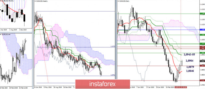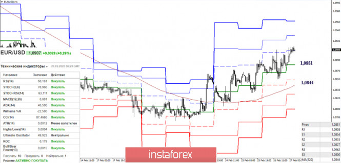 EUR/USD и GBP/USD 27 февраля – рекомендации технического анализаИнстаФорекс - Instaforex, 5 лет назад Экономический календарь (время московское) Среди статистики сегодняшнего дня можно отметить: 16:30 базовые заказы на товары длительного пользования и данные по ВВП (США); 18:00 индекс незавершенных продаж на рынке недвижимости (США). EUR/USD Прошлые сутки пара провела в борьбе за 1,0879. Сегодня игроки на повышение обновили вчерашний максимум. Ожидания и основные задачи остаются прежними. Для игроков на повышение важно сохранить достигнутое, пытаясь максимально усилить свои позиции перед закрытием недели и месяца. Такой результат обозначит для них хороший потенциал. Сопернику же крайне невыгодно бросать в сторону восстановления нисходящего тренда лишь длинную нижнюю тень месячной свечи. Сопротивления сегодня можно отметить на 1,0904 (дневной Фибо Киджун) и 1,0943-55 (дневной Киджун + недельный Фибо Киджун). Поддержками могут послужить 1,0879 (исторический уровень) и 1,0846 (дневной Тенкан). Поддержка центрального Пивот-уровня дня вчера помогла игрокам на повышение завершить снижение и восстановить восходящий тренд младших таймов. В настоящий момент действует бычье преимущество, тестируется первое сопротивление классических Пивот-уровней текущего дня (1,0908), далее сопротивления расположены на 1,0935 (R2) и 1,0962 (R3). Ключевые поддержки младших временных интервалов сегодня находятся на 1,0881 (центральный Пивот-уровень дня) и 1,0844 (недельная долгосрочная тенденция). GBP/USD Неопределённость действующей консолидации сохраняется. Игроки на понижение вновь вернули пару к ключевым поддержкам данного участка – 1,2882 – 1,2920 (нижние границы зоны консолидации + Фибо Киджуны недели и месяца). По-прежнему наибольшую важность имеет результат закрытия недели и месяца. Ключевые уровни младших таймов объединили сегодня свои усилия на 1,2932 (центральный Пивот-уровень + недельная долгосрочная тенденция). Работа ниже данных уровней будет способствовать усилению игроков на понижение. Понижательными ориентирами внутри дня выступают классические Пивот-уровни, поддержки которых расположены сегодня на 1,2857 (S1) – 1,2818 (S2) – 1,2743 (S3). Закрепление выше ключевых уровней качнёт чашу весов на Н1 в пользу игроков на повышение. Сопротивления в случае развития подъёма в сложившейся ситуации можно отметить на 1,2971 (R1) – 1,3046 (R2) – 1,3085 (R3). Ichimoku Kinko Hyo (9.26.52), Pivot Points (классические), Moving Avarage (120) Материал предоставлен компанией InstaForex - www.instaforex.com |