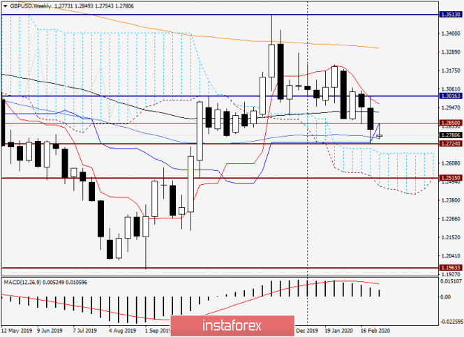 Эта неделя открылась небольшим медвежьим ГЭПом, который уже был закрыт, после чего пара вновь развернулась в южном направлении. В случае продолжения нисходящей динамики, пара опустится к верхней границе облака индикатора Ишимоку, которая проходит на 1.2668.