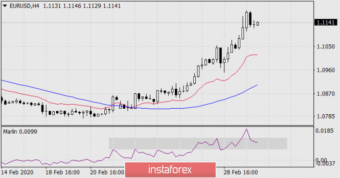 На четырёхчасовом графике сигнальная линия осциллятора Марлин вернулась в диапазон консолидации, других признаков разворота нет. Остаётся ждать.