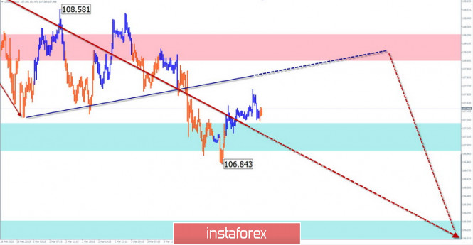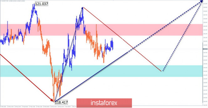 Упрощенный волновой анализ GBP/USD, USD/JPY, EUR/JPY на 4 мартаИнстаФорекс - Instaforex, 5 лет назад GBP/USD Анализ: На графике британского фунта доминирует нисходящее волна от 13 декабря. В начале текущего года стартовала заключительная часть (С). В конце прошлой недели цена продавила сильную поддержку и стала двигаться в боковой плоскости. Пробитая ранее поддержка стала сопротивлением. Прогноз: Пока структура текущей коррекции не завершится, движения в боковой плоскости продолжится. Сегодня ожидается общий флетовый настрой. В первой половине дня вероятен нисходящий вектор. Подъем курса пары можно ждать концу суток либо завтра. Зоны потенциального разворота Сопротивление: - 1.2830/1.2860 Поддержка: - 1.2760/1.2730 Рекомендации: Оптимальным для трейдеров на период коррекции фунта будет оставаться вне рынка. Сторонники интрадея могут использовать кратковременные торговые сделки согласно ожидаемой последовательности. USD/JPY Анализ: Потенциал начавшегося 20 февраля ценового снижения йены указывает на смену курса как минимум среднесрочного направления тренда. Движение цены имеет выраженный импульсный вид. Предварительный расчет дает примерно полторы ценовые фигуры до верхней границы ближайшей зоны потенциального разворота. Прогноз: На ближайших торговых сессиях ожидается завершение начавшейся два дня назад промежуточной коррекции. Сегодня ожидается флетовый настрой колебаний курса, с общим восходящим вектором. Подъем цены выше расчетной зоны сопротивления маловероятен. Возврат к основному курсу движения возможен уже в конце текущих суток. Зоны потенциального разворота Сопротивление: - 108.00/108.30 Поддержка: - 107.30/107.00 - 106.20/105.90 Рекомендации: Покупки японской иены сегодня очень рискованны. Разумней воздержаться от торговли и дождаться завершения предстоящего отката вверх. При появлении признаков смены курса рекомендуется искать сигналы продажи. EUR/JPY Анализ: Актуальная на текущий момент волновая конструкция кросса ведет отсчет с начала августа прошлого года. В последние два месяца цена корректируется. Сигналов завершения коррекции пока не наблюдается. Начавшийся в конце прошлой недели ценовой подъем обладает разворотным потенциалом. Это сигнал того, что подъем далее продолжится. Прогноз: Без полностью сформированной коррекционной структуры ценового подъема не будет. Сегодня ожидается продолжение начавшегося вчера флетового снижения курса. Предварительный участок завершения находится в районе расчетной поддержки. Возобновление роста цены ожидается не ранее завтрашнего дня Зоны потенциального разворота Сопротивление: - 120.20/120.50 Поддержка: - 119.40/119.10 Рекомендации: Продажи кроссы сегодня возможны, но следует максимально снизить лот. В районе зоны поддержки рекомендуется отслеживать сигналы покупки инструмента. Пояснения: В упрощенном волновом анализе (УВА) волны состоят из 3 частей (А-В-С). Анализируется последняя незавершенная волна. Сплошным фоном стрелок показана сформированная структура, пунктирным - ожидаемые движения. Внимание: Волновой алгоритм не учитывает продолжительность движений инструмента по времени! Материал предоставлен компанией InstaForex - www.instaforex.com |
