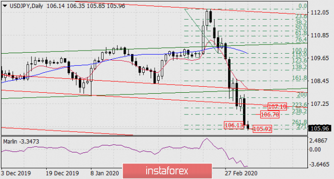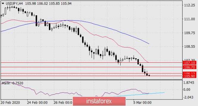 Прогноз по USD/JPY на 6 марта 2020 годаИнстаФорекс - Instaforex, 5 лет назад USD/JPY Облегчить давление на фондовый рынок сегодня могут данные по труду в США. Прогноз по новым рабочим местам вне сельскохозяйственного сектора составляет 175 тыс. Рост доллара относительно йены возможен к уровню Фибоначчи 238,2% (106.70). Развитие локальное оптимизма может продлить рост к вложенной линии ценового канала близ уровня Фибоначчи 223,6% на цене 107.10. Рост пары, конечно, будет не разворотным, а коррекционным, так как для разворота не сформированы даже начальные признаки.