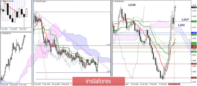 EUR/USD и GBP/USD 6 марта – рекомендации технического анализаИнстаФорекс - Instaforex, 5 лет назад Экономический календарь (время московское) В первую пятницу месяца основное внимание в экономическом календаре направлено на показатели из США – уровень безработицы и изменение числа занятых в несельскохозяйственном секторе, публикация данных ожидается в 16:30. Сегодняшний день не исключение. EUR/USD После пробоя дневное облако отработало как надёжная поддержка. Игрокам на понижение не удалось добиться существенного восстановления позиций, при этом соперник, как и ожидалось, приступил к тестированию наиболее важных экстремумов данного участка – 1,1214 (максимум текущего торможения) и 1,1240 (предыдущий максимальный экстремум недельной и месячной коррекции). Закрепление выше будет еще одним хорошим поводом для дальнейшей надёжной смены нисходящего тренда. Сегодня закрываем неделю, о новых повышательных перспективах лучше поговорить в понедельник. В качестве поддержек сегодня можно отметить 1,1147 (нижняя граница недельного облака) и 1,1111 (дневное облако). Игроки на повышение, вернув себе центральный Пивот-уровень, продолжили подъём, обозначив новые максимумы. Преимущество сейчас на Н1 полностью принадлежит игрокам на повышение. Повышательными ориентирами внутри дня являются сопротивления классических Пивот-уровней 1,1282 (R1) – 1,1326 (R2) – 1,1407 (R3). Ключевые поддержки младших таймов и основные ориентиры при развитии коррекционного снижения сегодня находятся на 1,1201 (центральный Пивот-уровень) и 1,1128 (недельная долгосрочная тенденция). GBP/USD Пара исполнила восходящую коррекцию до дневного среднесрочного тренда (1,2967), усиленного сейчас недельными уровнями 1,2967 (Тенкан) – 1,3010 (Фибо Киджун). В результате в ближайшее время возможно торможение и формирование отбоя. Ближайшей зоной поддержек в сложившейся ситуации является 1,2910 (дневной Фибо Киджун) – 1,2882 (недельный Фибо Киджун) – 1,2854 (недельный Киджун). На младших временных интервалах всё остаётся по-прежнему – игроки на повышение сохраняют преимущество и продолжают подъём. Сопротивления классических Пивот-уровней, которые служат внутри дневными ориентирами, сегодня расположены на 1,2993 – 1,3033 – 1,3100. Ближайшей важной поддержкой является центральный Пивот-уровень (1,2926). Закрепление ниже позволит рассчитывать на дальнейшее усиление медвежьих настроений, но чтобы изменить расстановку сил, игрокам на понижение нужно будет исполнить достаточно результативное снижение. Его основным ориентиром станет недельная долгосрочная тенденция (1,2835), промежуточную поддержку можно отметить на 1,2886 (S1). Ichimoku Kinko Hyo (9.26.52), Pivot Points (классические), Moving Avarage (120) Материал предоставлен компанией InstaForex - www.instaforex.com |