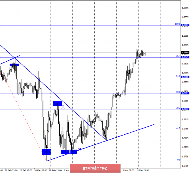 GBP/USD. 6 марта. Остановит ли рост фунта стерлингов статистика из Америки?ИнстаФорекс - Instaforex, 5 лет назад GBP/USD – 1H. Добрый день, уважаемые трейдеры! На часовом графике пара GBP/USD продолжает процесс роста и выполнила закрепление над уровнем коррекции 76,4% - 1,2949. Таким образом, 6 марта рост котировок может быть продолжен в направлении следующего коррекционного уровня 100,0% - 1,3017. Новая восходящая линия тренда продолжает сохранять «бычье» настроение трейдеров, но пара фунт-доллар отошла от нее на почтительное расстояние. Закрепление котировок под уровнем Фибо 76,4% сработает в пользу американской валюты и некоторого падения в направлении коррекционного уровня 61,8% - 1,2906. GBP/USD – 4H. На 4-часовом графике пара GBP/USD выполнила закрытие над нисходящим трендовым коридором. Таким образом, ожидаемого отбоя от верхней линии коридора не произошло, а настроение трейдеров изменилось на «бычье». В то же время назревает медвежья дивергенция у индикатора MACD, которая позволяет рассчитывать на разворот в пользу американской валюты и возобновление падения в направлении уровня лоу 1,2641. В целом я бы сказал, что картина сейчас на младших графиках максимально неоднозначная и запутанная. Особенно, учитывая показания дневного графика, на котором сразу три графических построения говорят в пользу сохранения «медвежьего» настроения. GBP/USD – Daily. На дневном графике графическая картина остается наиболее интересной. Котировки пары фунт-доллар выполнили закрепление над уровнем коррекции 38,2% - 1,2920. Таким образом, шансы на продолжение роста повысились. Однако! Сразу два нисходящих трендовых коридора и нисходящая линия тренда продолжают характеризовать настроение рынка как «медвежье». Отбой от верхней линии малого трендового коридора или линии тренда может сработать в пользу валюты США и возобновления падения в направлении уровня коррекции 50,0% - 1,2736. И в этом же случае падение котировок возобновится на младших графиках, и настроение на них вновь измениться на «медвежье». Таким образом, в глобальном плане медведи сохраняют лидерство, поэтому и Short-позиции выглядят более привлекательными сейчас. Но в случае закрытия котировок над линией тренда процесс роста может быть продолжен в направлении уровня 1,3086 (приблизительно). Обзор новостей: В четверг, 5 марта, в Великобритании не было никаких новостей, кроме информации о завершении первого раунда переговоров в рамках будущего соглашения по Brexit. Стороны позитивно отметили атмосферу и результаты переговоров, хотя и отметили, что «работы еще много». Календарь новостей для США и Великобритании: США – Уровень безработицы (15-30 GMT +2). США – Изменение числа занятых в несельскохозяйственном секторе (Nonfarm Payrolls) (15-30 GMT +2). США – Изменение средней почасовой оплаты труда (15-30 GMT +2). 6 марта трейдеры будут внимательно следить за данными из Америки о безработице, оплате труда и количеству новых рабочих месте вне с/х сектора. Из Великобритании никаких новостей не ожидается. Отчет COT(Commitments of traders): Последний отчет от 25 февраля показывает, что равенство между крупными участниками рынка сохраняется. Таким образом, я по-прежнему склоняюсь к тому мнению, что сильных курсовых изменений от пары GBP/USD ожидать трейдерам в данное время не стоит. Вероятнее всего, торги и дальше будут проходить в стиле «150 пунктов вверх – 200 вниз – 250 вверх». Сегодня выходит но