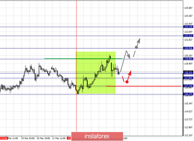 Фрактальный анализ по основным валютным парам на 16 мартаИнстаФорекс - Instaforex, 5 лет назад Прогноз на 16 марта: Аналитический обзор валютных пар в масштабе Н1: По паре Евро/Доллар ключевыми уровнями в масштабе Н1 являются: 1.1259, 1.1207, 1.1166, 1.114, 1.1065, 1.0988, 1.0942 и 1.0851. Здесь, мы продолжаем следить за развитием нисходящего цикла от 9 марта. Краткосрочное нисходящее движение, а также консолидацию, ожидаем в диапазоне 1.1114 – 1.1065, пробой последнего значения приведет к выраженному нисходящему движению, здесь цель – 1.0988, в коридоре 1.0988 – 1.0942 консолидация цены. Потенциальным значением для низа, считаем уровень 1.0851, по достижении этого значения ожидаем откат к верху. Краткосрочное восходящее движение, ожидаем в диапазоне 1.1166 – 1.1207, пробой последнего значения приведет к углубленной коррекции, здесь цель – 1.1259, этот уровень является ключевой поддержкой для нисходящей структуры. Основная тенденция – нисходящий цикл от 9 марта Торговые рекомендации: Buy: 1.1166 Take profit: 1.1205 Buy: 1.1208 Take profit: 1.1257 Sell: 1.1065 Take profit: 1.0990 Sell: 1.0986 Take profit: 1.0943 По паре Фунт/Доллар ключевыми уровнями в масштабе Н1 являются: 1.2664, 1.2543, 1.2448, 1.2227, 1.2174 и 1.2051. Здесь, мы следим за развитием нисходящего цикла от 9 марта. Продолжения движения к низу, ожидаем после прохода ценой шумового диапазона 1.2227 – 1.2174, в данном случае потенциальная цель – 1.2051, по достижении этого уровня ожидаем откат в коррекцию. Краткосрочное восходящее движение, возможно в коридоре 1.2448 – 1.2543, пробой последнего значения приведет к углубленной коррекции, здесь цель – 1.2664, этот уровень является ключевой поддержкой для нисходящей структуры. Основная тенденция – нисходящий цикл от 9 марта Торговые рекомендации: Buy: 1.2448 Take profit: 1.2540 Buy: 1.2544 Take profit: 1.2664 Sell: 1.2174 Take profit: 1.2051 Sell: Take profit: По паре Доллар/Франк ключевыми уровня в масштабе Н1 являются: 0.9686, 0.9641, 0.9570, 0.9518, 0.9444, 0.9411 и 0.9355. Здесь, мы следим за развитием восходящего цикла от 9 марта. Краткосрочное восходящее движение, а также консолидацию, ожидаем в диапазоне 0.9518 – 0.9570, пробой последнего значения должен сопровождаться выраженным восходящим движением, здесь цель – 0.9641. Потенциальным значением для верха, считаем уровень 0.9686, по достижении которого, ожидаем консолидацию, а также откат к низу. Краткосрочное нисходящее движение, возможно в коридоре 0.9444 – 0.9411, пробой последнего значения приведет к углубленной коррекции, здесь цель – 0.9355, этот уровень является ключевой поддержкой для верха. Основная тенденция – начальные условия для верха от 9 марта Торговые рекомендации: Buy: 0.9520 Take profit: 0.9568 Buy: 0.9572 Take profit: 0.9640 Sell: 0.9444 Take profit: 0.9412 Sell: 0.9408 Take profit: 0.9360 По паре Доллар/Иена ключевыми уровнями в масштабе являются: 111.11, 110.31, 108.96, 108.00, 106.60, 105.97 и 105.02. Здесь, мы следим за развитием восходящего цикла от 9 марта. Продолжения движения к верху, ожидаем после пробоя 108.00, в данном случае цель – 108.96, возле этого уровня консолидация. Пробой 108.96 приведет к развитию выраженного движения, здесь цель – 110.31. Потенциальным значением для верха, считаем уровень 111.11, по достижении этого значения ожидаем консолидацию, а также откат к низу. Краткосрочное нисходяще движение, возможно в коридоре 106.60 – 105.97, пробой последнего значения приведет к углубленной коррекции, здесь цель – 105.02, этот уровень является ключевой поддержкой для верха. Основная тенденция: восходящий цикл от 9 марта Торговые рекомендации: Buy: 108.00 Take profit: 108.92 Buy: 108.98 Take profit: 1