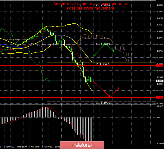 GBP/USD. 16 марта. Секретный отчет: 80% британского населения может заразиться «коронавирусом».ИнстаФорекс - Instaforex, 5 лет назад 4-часовой таймфрейм Амплитуда последних 5 дней(high-low): 165п – 233п – 172п – 358п – 351п. Средняя волатильность за последние 5 дней: 256п(высокая). Началась новая торговая неделя и для фунта стерлингов. С того же внепланового заседания ФРС, с того же снижения ставки на 100 базисных пунктов, но, в отличие от евровалюты, британский фунт никак не отреагировал на это событие. Приблизительно аналогичный вопрос мы задавали и в статье по EUR/USD: можно ли представить себе в обычное время, чтобы ФРС разом снизила ставку на 1% и при этом доллар США преспокойно продолжил дорожать? Мы по-прежнему считаем, что то, что сейчас происходит на рынках можно назвать только «паникой». Следовательно, сейчас совершенно неважны все макроэкономические данные. Трейдеры торгуют сейчас исключительно на основании своих собственных соображений. Спрогнозировать движение пары, таким образом, невозможно в данных условиях. Тем временем, Британское Правительство продолжает «ободрять» свое население. Напомним, что ранее премьер-министр страны Борис Джонсон выступил с речью, в которой заявил, что многие семьи потеряют своих родственников из-за заболевания «коронавирусом». Сложно сказать, насколько правильным был такой шаг Джонсона. Успокоить население собственной страны он не смог, а вот дополнительную панику разжечь у него, похоже, получилось. Сегодня же в СМИ попал отчет Национальной службы здравоохранения Великобритании, в котором говорится, что около 80% британцев заразятся вирусом COVID-2019, а сама эпидемия продлиться до весны 2021 года. Порядка 8 миллионам британцев понадобится госпитализация в связи с заболеванием. Правда, главный медик считает, что это цифры - для наихудшего сценария. Возможно, в реальности все будет немного лучше. Однако чего точно не стоит ожидать, так как это исчезновения вируса с наступлением теплой поры года. Напомним, что ранее Дональд Трамп обещал, что «вирус не переживет весну и лето». Министерством здравоохранения ожидается, что со временем вирус перестанет быть столь опасным для человека, так как будет выработан иммунитет. Однако в любом случае, речь идет минимум о годичной эпидемии. Что будет с мировой, британской и американской экономиками за это время даже представить себе сложно... Также в документе указывается, что медицинских сил не хватает для того, чтобы проверить всех людей на заболевание. Не говоря уже о том, что для всех инфицировавшихся и требующих госпитализации элементарно не хватит коек в больницах. По состоянию на 16 марта более 170 тысяч человек по всему миру заболели новым вирусом в 150 странах мира. Около 77 тысяч полностью выздоровели. Рекомендации для коротких позиций: На 4-часовом таймфрейме пара фунт/доллар продолжает сильнейшее движение вниз. Те трейдеры, кто остается в sell-позициях, могут удерживать их с целями 1,2017 и 1,1956. Разворот индикатора MACD вверх при параллельном повышении цены может указать на начало коррекции. Открывать новые короткие позиции, с нашей точки зрения, сейчас опасно. Рекомендации для длинных позиций: Покупать пару GBP/USD рекомендуется только в случае возврата котировок в область выше критической линии с целью первый уровень сопротивления 1,2895. Однако в ближайшее время такого развития событий н
